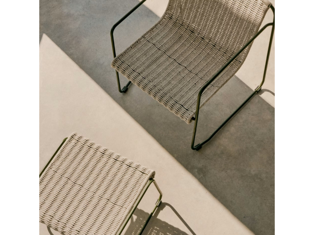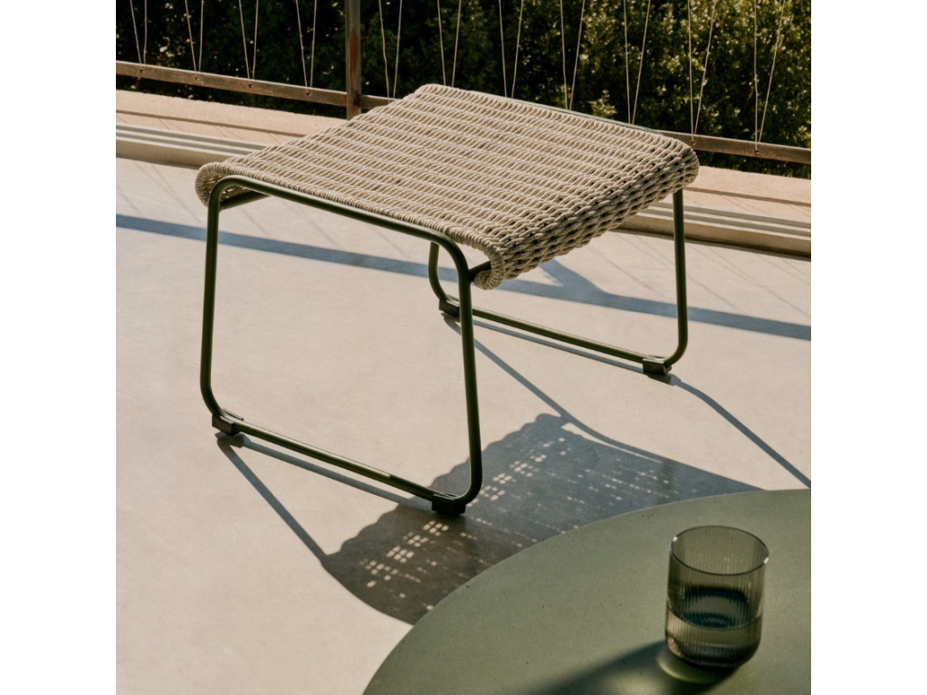 Světle šedá zahradní podnožka Maurina spojuje moderní estetiku s řemeslnou precizností. Ručně tkaný výplet přináší komfort i vizuální lehkost, zatímco pozinkovaná ocelová konstrukce v tlumeně zeleném odstínu zajišťuje vysokou odolnost proti korozi. Podnožku můžete dokonale sladit se zahradním křeslem ze stejnojmenné kolekce, ve které naleznete i další krásné a funkční designovky.
