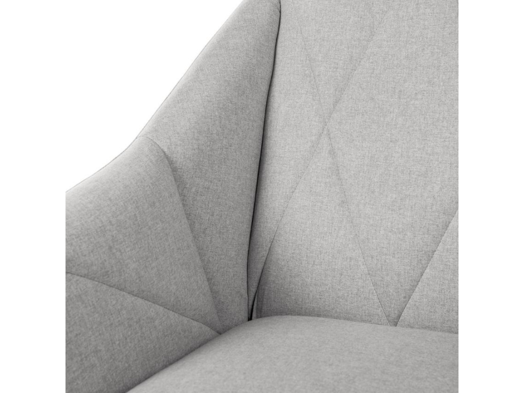 Křeslo Kyoto čalouněné šedou látkou od značky Somcasa je skvělým doplňkem každého obývacího pokoje. Kosočtvercové prošívání sedáku vytváří s kovovými nohami příjemný kontrast a tím tvoří jednoduchý a moderní kousek pro pohodlný odpočinek po celodenní práci.