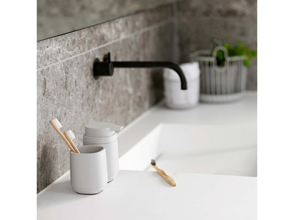 Praktický stojan na zubní kartáčky Time od dánské značky Zone Denmark vám pomůže udržet vaše umyvadlo hezky uspořádané. Díky minimalistickému vzhledu nemusíte stylový betonový kelímek na umyvadlo využít jen jako držák na zubní kartáčky a pastu, ale pomůže vám také s organizací doplňků pro líčení či hřebenů. Neutrální světle betonový odstín se snadno kombinuje a hodí se k tmavším i světlejším koupelnám.