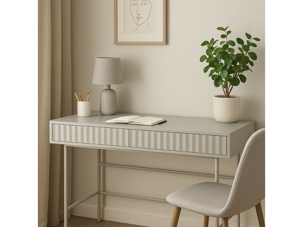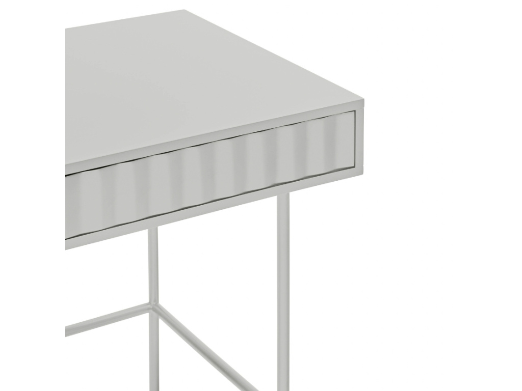Stylový pracovní stůl Teulat Sierra zaujme na první pohled svým minimalistickým designem a harmonikovým vystouplým vzorem na čele zásuvky. Je vyroben z lakovaného MDF v elegantní bílé barvě a celý korpus doplňuje elegantní kovová podnož. Disponuje praktickým úložným prostorem v podobě dvojice zásuvek, které využijete na dokumenty i psací a kancelářské potřeby. Stůl navíc můžete doplnit dalšími úložnými prostory ze série Sierra a získat tak dokonale sladěný prostor.