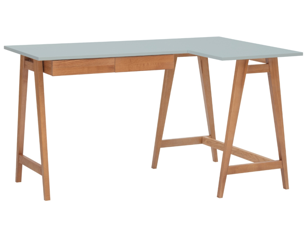 Hledáte-li do vaší pracovny rohový stůl ve skandinávském designu, je RAGABA LUKA právě pro vás. Stůl disponuje dvěma zásuvkami z jasanového masivu, které vám poskytnou praktické úložiště na potřebné věci. Díky rohové desce z MDF vám stůl nabídne pohodlí a dostatečný prostor při práci. Uspořádání věcí a kancelářských potřeb tak bude o mnoho snazší. Elegantní minimalistická podnož je vyrobena z jasanového dřeva, namořena mořidlem v odstínech dubu. LUKA bude perfektním designovým kouskem do vaší pracovny, využití najde také v dětském nebo studentském pokoji.