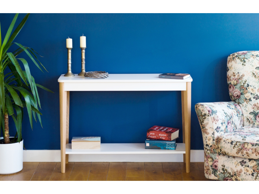 Toaletní stolek RAGABA ASHME je moderním stolkem, který je inspirovaný klasickým skandinávským designem. Stolek snoubí minimalismus v podobě čisté desky z MDF s elegancí ve formě vysoké podnože z jasanového dřeva. Praktickým prvkem stolku je spodní police, kterou využijete na vaše oblíbené dekorace, knihy či květiny. Díky své úsporné velikosti se toaletní stolek hodí i do menších interiérů a skvěle vynikne například v ložnici, obývacím pokoji či předsíni. ASHME lze využít také jako odkládací či barový stolek na různé večírky.
