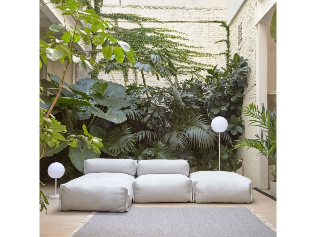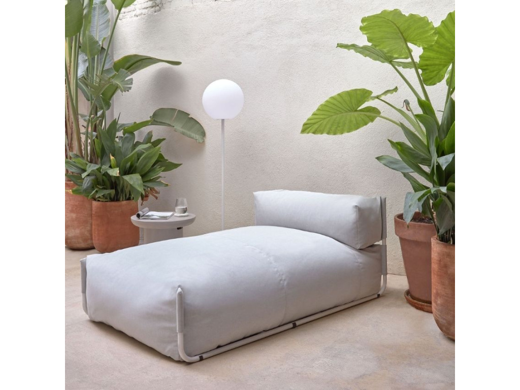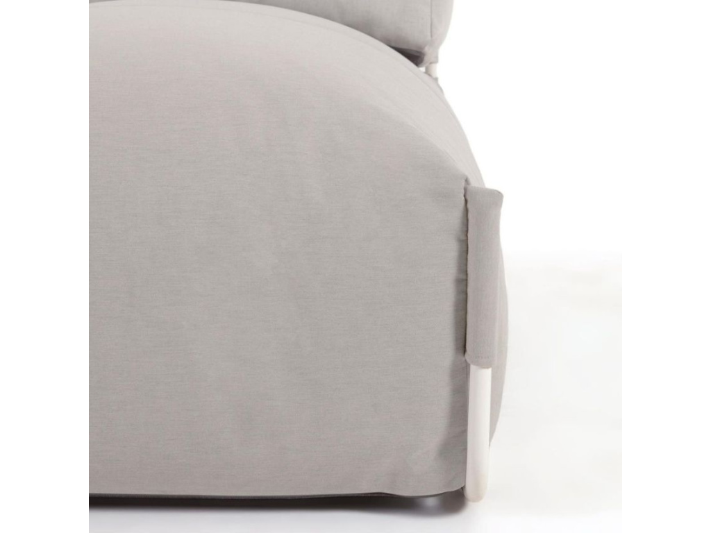 Modulární pohovka Square vám pomůže vytvořit na vaší zahradě nebo terase perfektní odpočinkovou zónu, kterou si sestavíte přesně podle vašich potřeb. Pohovka je čalouněná odolnou látkou světle šedé barvy a stojí na nízké hliníkové podnoži. Díky široké zádové opěrce nabízí opravdu komfortní posezení, které si rychle zamilujete.