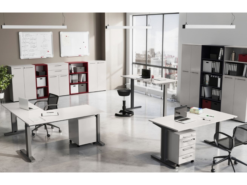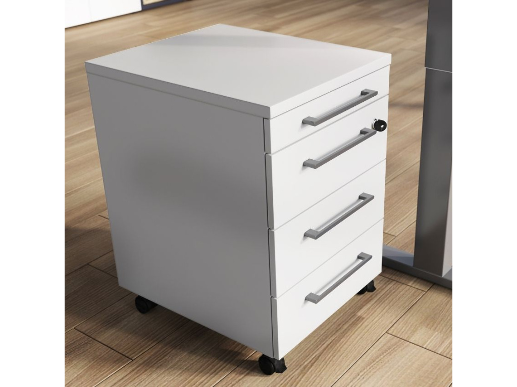 Moderní kancelářský kontejner Agenda od značky GERMANIA je perfektním kouskem do vaší kanceláře. Jednoduchá, světle šedá barva laminátového korpusu vytváří jemný a čistý vzhled, který do vašeho interiéru vnese nádech minimalistického designu. Prostorné úložiště zajišťuje 5 zásuvek, díky čemuž pohodlně uložíte velké množství všeho inventáře. Celý design podtrhnou 4 kovové úchytky v perleťově stříbrné barvě. Povrchová úprava korpusu z melaminové pryskyřice poskytuje nárazuvzdorný a vlhkosti odolný povrch. Příjemným bonusem je možnost kontejner uzamknout a ochránit tak vaše důležité dokumenty. Díky nárazuvzdorným ABS hranám máte vyšší jistotu odolnosti, díky čemuž se skvěle hodí nejen do komerčních prostor, ale také do domácích pracoven. Doporučujeme kombinace všech produktů z řady Agenda.