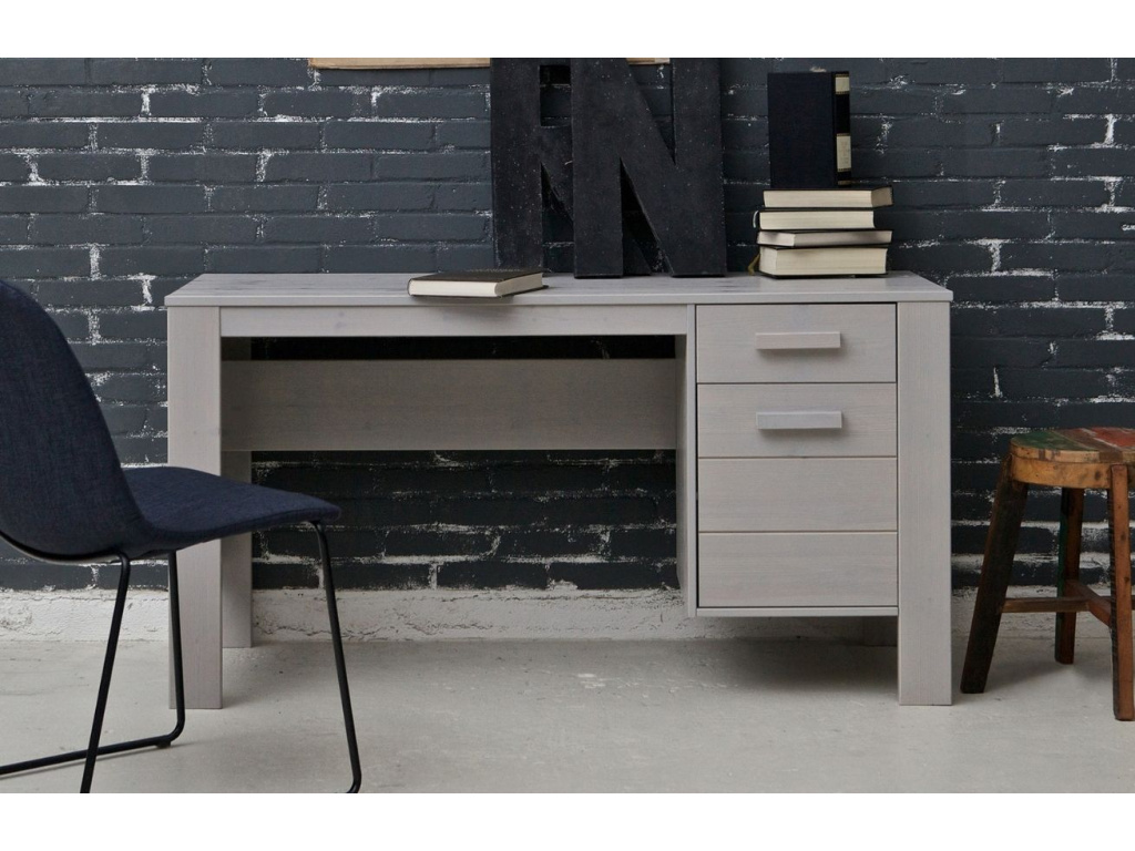 Pracovní stůl Koben je vyroben z masivního borovicového dřeva a lakovaný v univerzálním, nyní velmi oblíbeném, šedém odstínu. Výhodou stolu je praktický úložný prostor v podobě zásuvky a jedné skříňky. Pracovní stůl Koben bude stylovým doplňkem i praktickým pomocníkem do každého dětského i studentského pokoje.