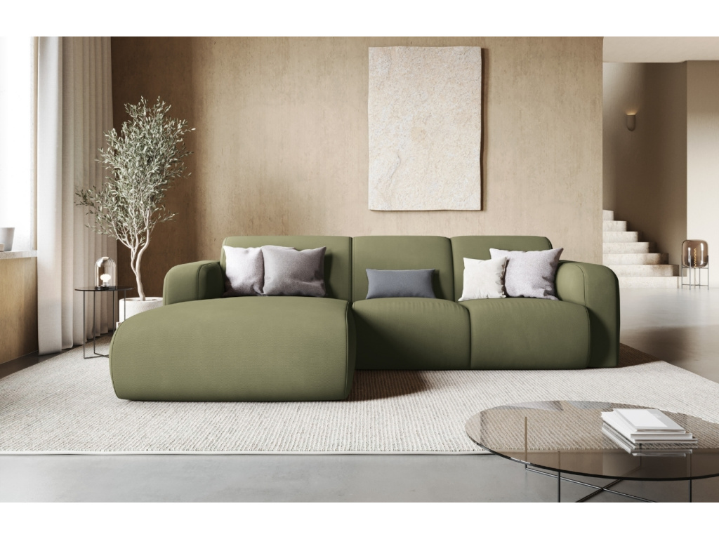 Luxus, maximální pohodlí a moderní design – to vše do vaší společenské místnosti přinese rohová pohovka Lola od značky Windsor & Co! O váš dokonalý odpočinek se postará čalounění ze strukturované látky ve světle zeleném provedení, které je měkké na dotek. Látka je opatřena voděodolnou vrstvou, která představuje skvělého pomocníka pro ochranu povrchu před znečištěním. Pohovka Lola svými proporcemi nabídne prostorné a pohodlné místo pro 4 osoby. Pro sjednocení vašeho sedacího koutu doporučujeme pohovku doplnit také stylovým křeslem a podnožkami ze stejnojmenné série. Všechny produkty nabízíme v několika barvách. Odpočiňte si a relaxujte ve stylu!