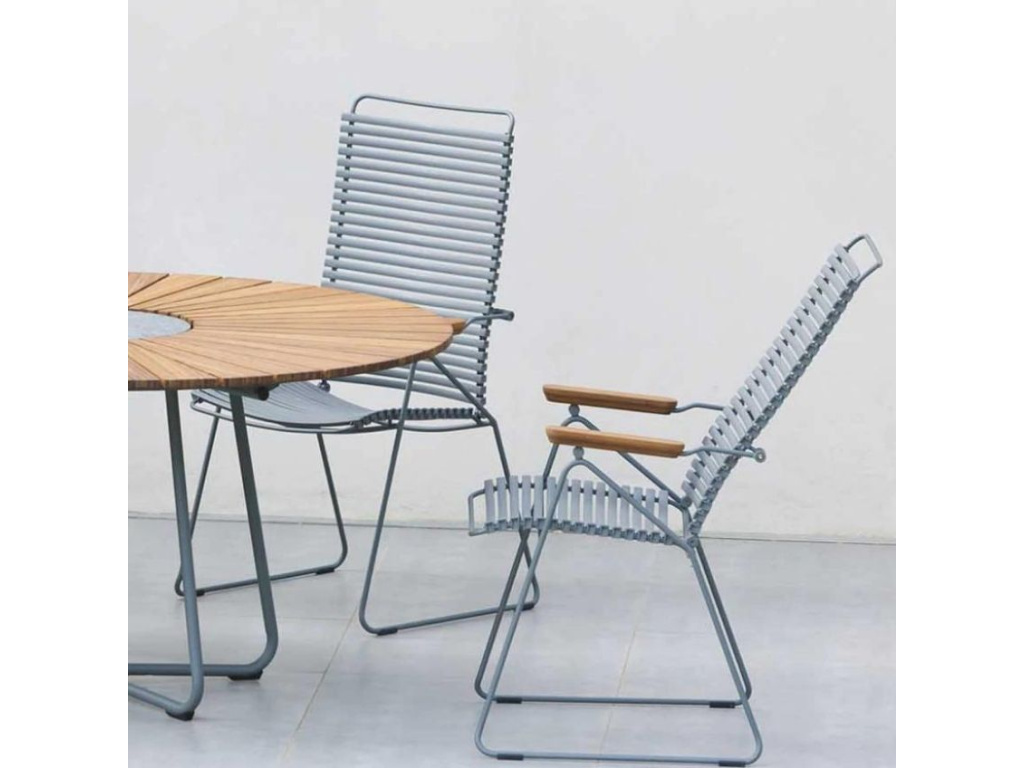Zahradní židle HOUE Click zaujme svým moderním vzhledem. Židle Click klade důraz na moderní severský styl, díky čemuž zaujme na první pohled. Praktickým prvkem této židle je možnost polohovatelnosti a možnost zvýšit si tak úroveň relaxace a odpočinku. Pohodlný sedák z plastových lamel, bambusové područky a kovová podnož společně tvoří unikátní kousek nábytku, který vás osloví. Moderní design a osobitý výraz zdůrazňují celkovou podstatu židle. Židle je vhodná do exteriérového prostředí.