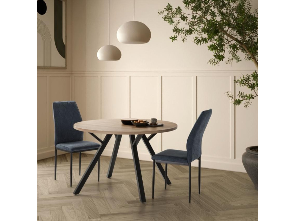 Kulatý jídelní stůl Beni od značky Marckeric zaujme svým jednoduchým designem v industriálním stylu. Skvěle se bude vyjímat v kterémkoli interiéru s převahou světlých, přírodních tónů. Laminátovou desku v přírodním světle hnědým odstínu doplňuje zajímavě konstruovaná podnož z černě lakovaného kovu. Stůl Beni je díky svým rozměrům vhodný do menších prostor.