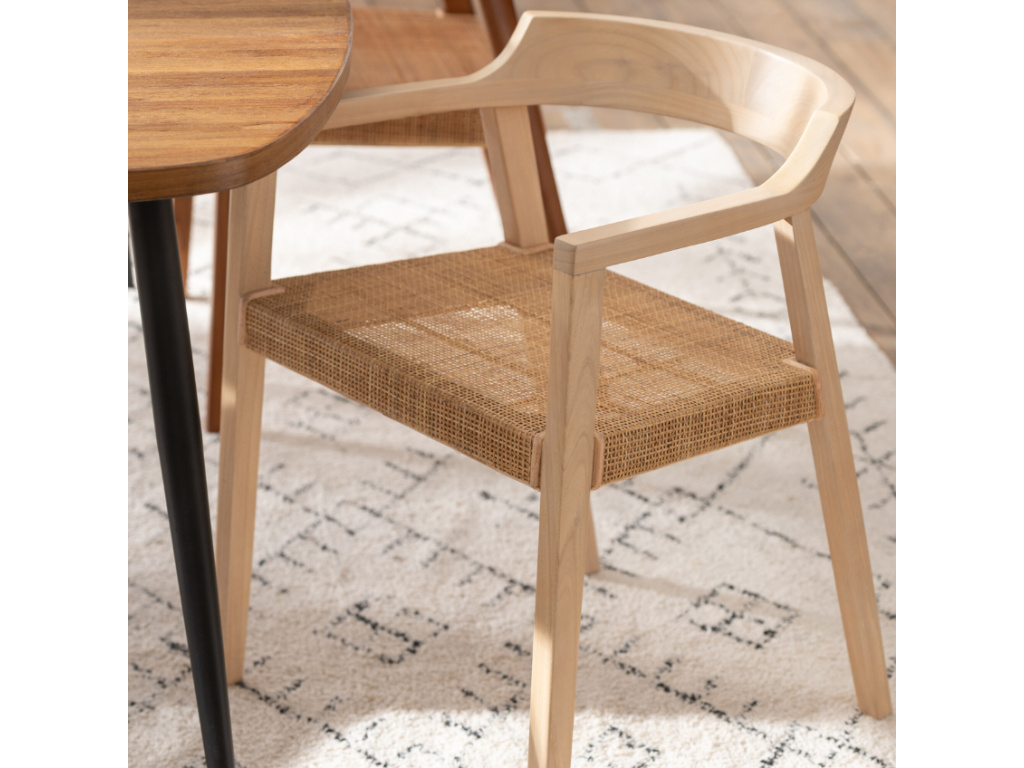 Představujeme vám jídelní židli Talya od značky J-line. Její konstrukce je vyrobena z přírodního teakového dřeva, které umocňuje její elegantní dojem. O pohodlí se postará vyplétaný sedák a zahnutá opěrka, která se svým tvarem přizpůsobí křivkám vašich zad. Nechte se unést skandinávským stylem a užijte si stolování plnými doušky. V našem sortimentu naleznete také další designovky z produktové série Talya – omrkněte je!
