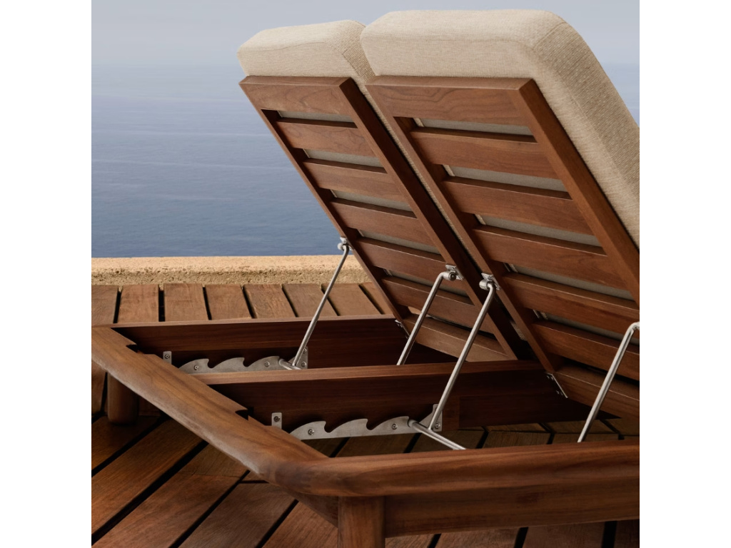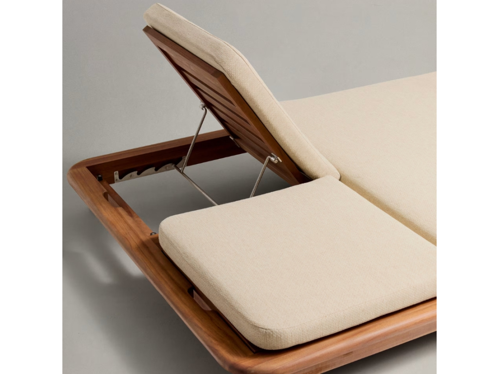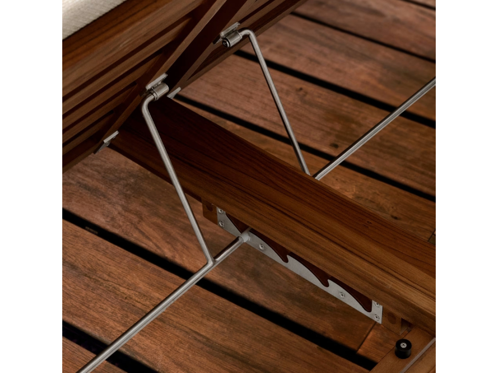 Pozn.: Součástí lehátka je odnímatelná matrace, vyrobena z nepropustné tkaniny, která umožňuje rychlé schnutí. Nábytek i matraci skladujte na suchém vnitřním místě. Pokud ho chcete nechat venku, chraňte ho na podzim, v zimě a v období dešťů nepromokavým obalem. Abyste zajistili, že nábytek zůstane vždy perfektní, aplikujte na teakové dřevo alespoň jednou ročně přípravek na údržbu.