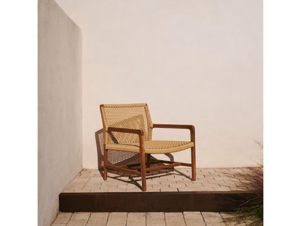 Zahradní křeslo Kave Home Sabolla s područkami vám zpříjemní odpočinek v altánu i pod pergolou. Je tvořeno masivní teakovou konstrukcí, kterou doplňuje ručně tkaný výplet. Ten najdete na opěradle i sedáku. Jeho skvělou vlastností je odolnost vůči UV záření. Při výrobě křesla bylo navíc myšleno na životní prostředí – použité dřevo pochází z šetrně obhospodařovaných lesů a disponuje tedy certifikací FSC. Pořiďte si tento prostorný designový kousek a užijte si v jeho společnosti třeba chvíle s oblíbenou knížkou.