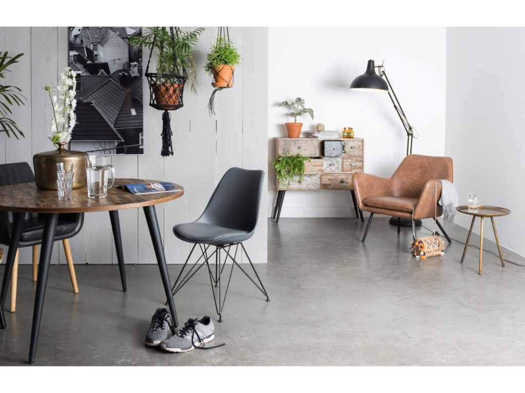 Kulatý jídelní stůl MO si vás získá svým jednoduchým a elegantním provedením. MDF deska s teakovou dýhou působí luxusně a rozšiřující se kovová podnož vzhled stolu skvěle doplní. Zamilujte si klasický design stolu MO, který skvěle doplní rustikálně laděné interiéry.