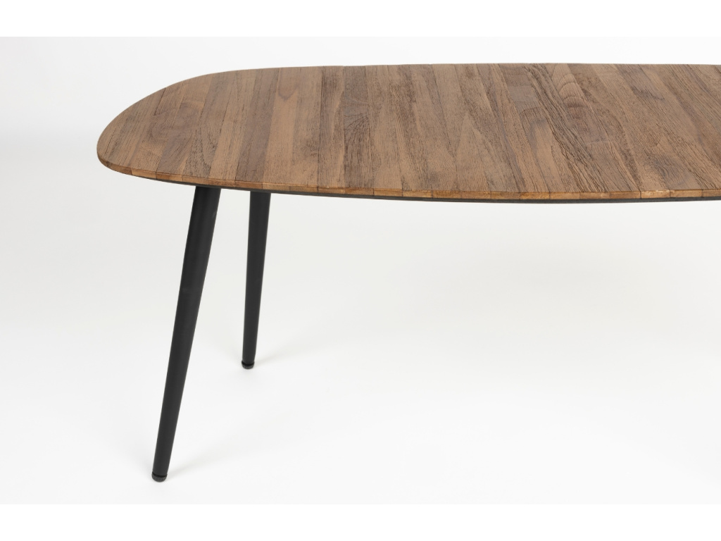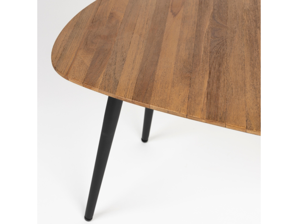 Minimalistický konferenční stolek GUALDO od značky White Label Living dodá vašemu interiéru příjemnou a útulnou atmosféru. Zaoblená podlouhlá deska z teakové dýhy se snoubí s lehce zešikmenou podnoží z lakovaného kovu. Kouzlo stolku dodává přírodní struktura dřeva s jeho výraznou kresbou a kontrast s kovovou podnoží. Tento ležérní stolek bude designovým kouskem do moderních, ale i vintage laděných interiérů.