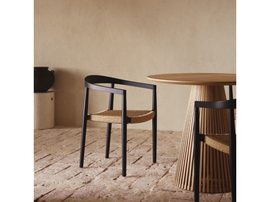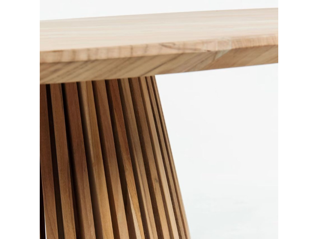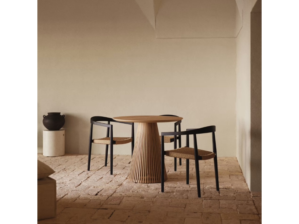 Kulatý jídelní stůl Kave Home Jeanette je vyroben z teakového dřeva s důrazem na kvalitu a čistě přírodní materiály. Příjemný barevný tón i atraktivní vzhled stolu slibují, že se stane dominantou každého prostoru. Stůl vyniká nejen použitým materiálem, ale také zajímavě strukturovanou podnoží. Představuje skvělou volbu také pro váš krytý exteriér - co takhle vybavit ním vaši krytou terasu nebo pergolu?
