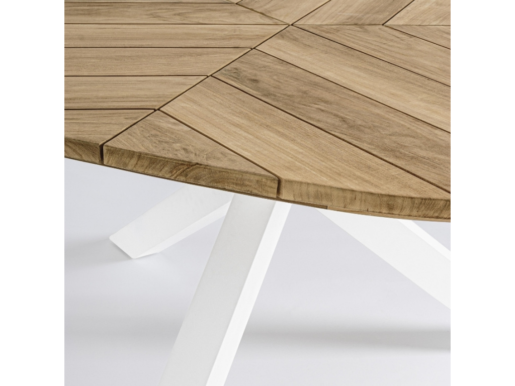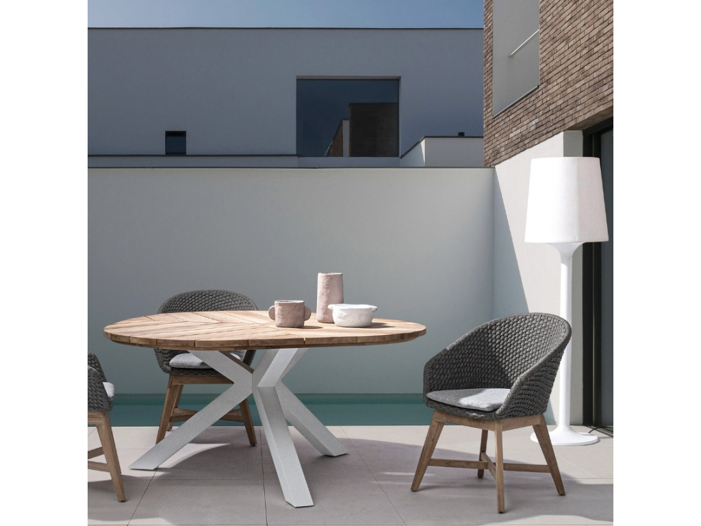 Zajímavý zahradní jídelní stůl Bizzotto Paldail si zamilujete na první pohled. Stůl vás uchvátí díky desce poskládané z masivního teakového dřeva v krásném přírodním odstínu. Deska stolu je doplněna bíle lakovanou hliníkovou podnoží, jejíž design dodává stolu na originalitě a osobitosti. Stůl Paldail se skvěle hodí do komerčních i nekomerčních prostorů.