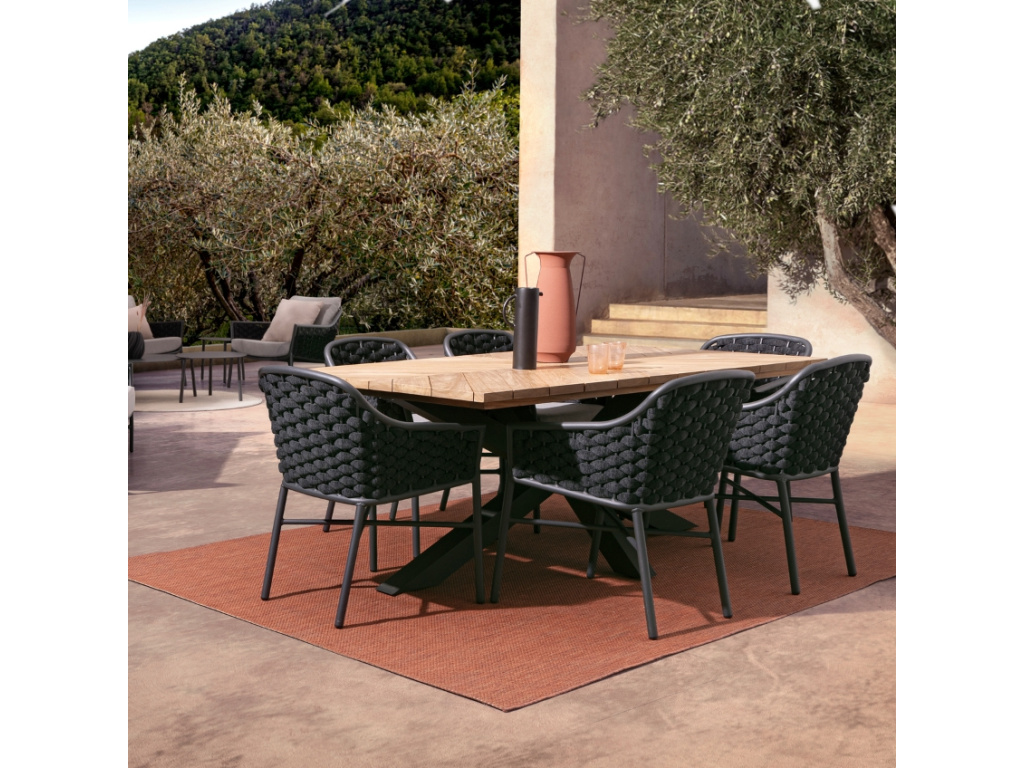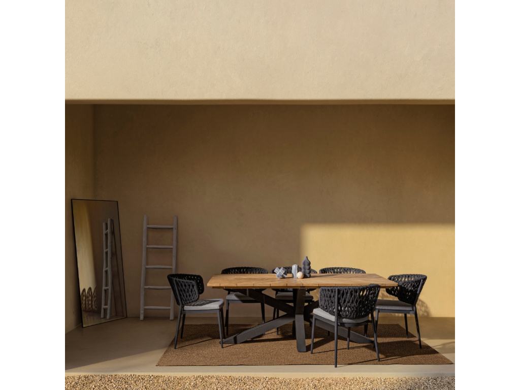 Venku chutná nejlépe! Užijte si dobré jídlo a pití na zahradě nebo terase, obklopeni rodinou a přáteli. U velkého jídelního stolu Palmdale s délkou 200 cm budete mít dostatek prostoru i v početnější skupině. Pevná a odolná deska z teakového dřeva (třída A) a kontrastní černé nohy z hliníku jsou příslibem italské kvality značky Bizzotto. Potěší vás jistě také nastavitelné nohy, se kterými snadno ustavíte stůl i na nerovném povrchu. Přestože je designový jídelní stůl Palmdale odolný vůči venkovním vlivům, a tak je skvělou volbou na zahradu či terasu, můžete jej využít i v interiéru. Jídelní stůl nabízíme ve dvou barevných variantách a dvou tvarech.