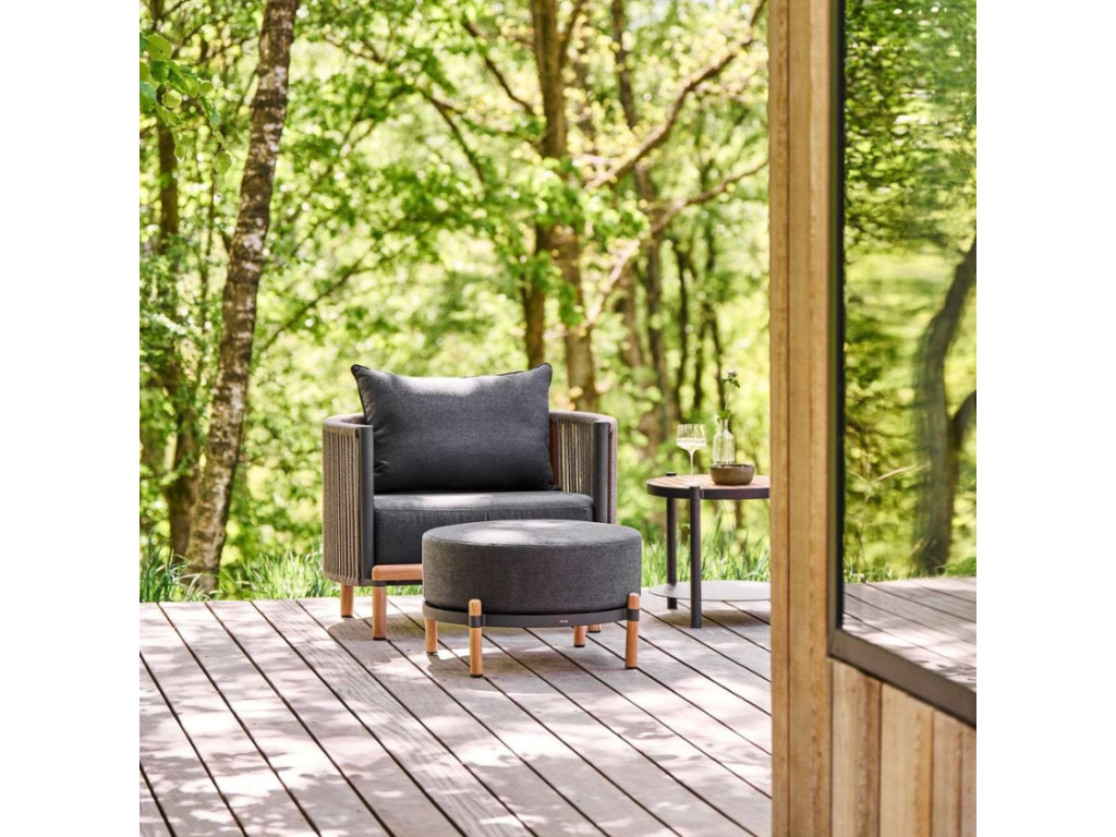 Praktický společník v designovém provedení, takový je zahradní stolek Mindo 107. Lehká konstrukce z hliníku splňuje náročné venkovní podmínky i nároky na údržbu. Deska ze světlého teakového dřeva tvoří s černě lakovaným hliníkem skvělý kontrast a vytváří tak unikátní spojení. Zcela jistě oceníte i hliníkovou desku ve spodní části stolku, která je ideálním místem pro dekorace a doplňky. Celou řadu Mindo 107 vytvořila dánská designérka Rikke Frost, která si pro vás připravila další designové kousky. Teakové dřevo je opatřeno certifikací FSC, takže máte jistotu, že dřevo pochází z odpovědných zdrojů.