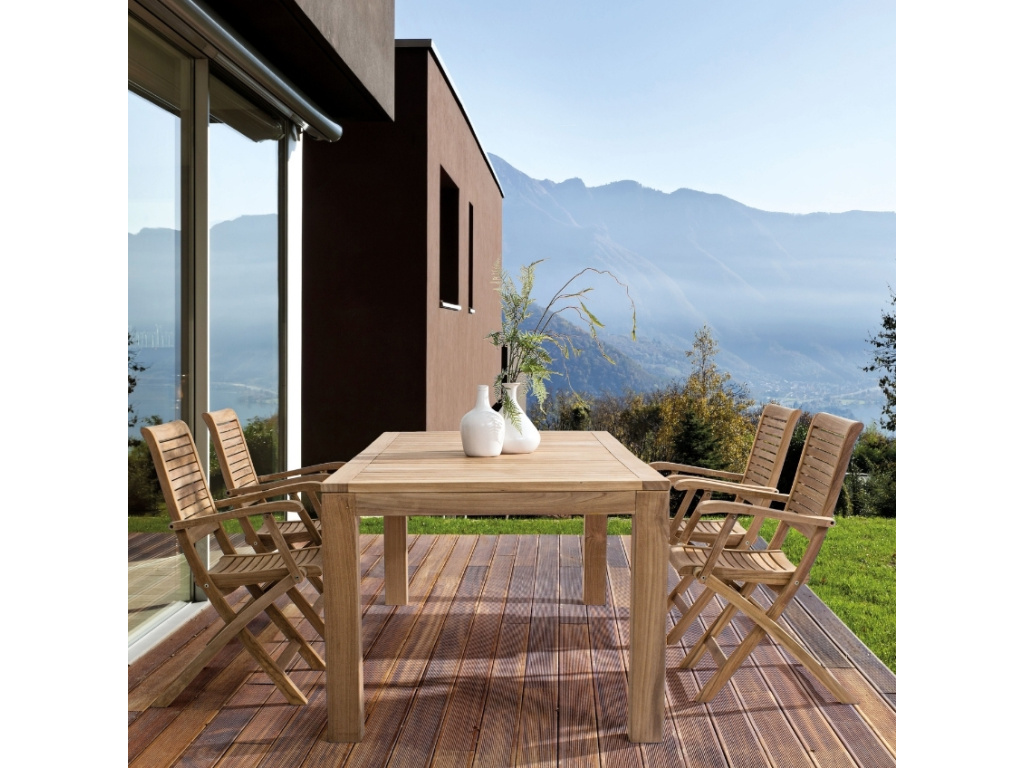 Užijte si krásné počasí s přáteli či rodinou u rozkládacího jídelního stolu Maryland od italské značky Bizzotto. Přirozená krása masivního teakového dřeva vás zcela okouzlí. Na vaší zahradě či terase jistě oceníte kvalitu teakového dřeva, které je známé svou odolností vůči venkovním vlivům. Praktickou výhodou je možnost rozšíření desky až o 40 cm pro každou stranu pomocí skrytých panelů ve středu stolu. Stůl je díky své konstrukci velmi pevný a stabilní. Bizzotto Maryland se hodí do každé zahrady, altánu a celkově venkovního prostředí.