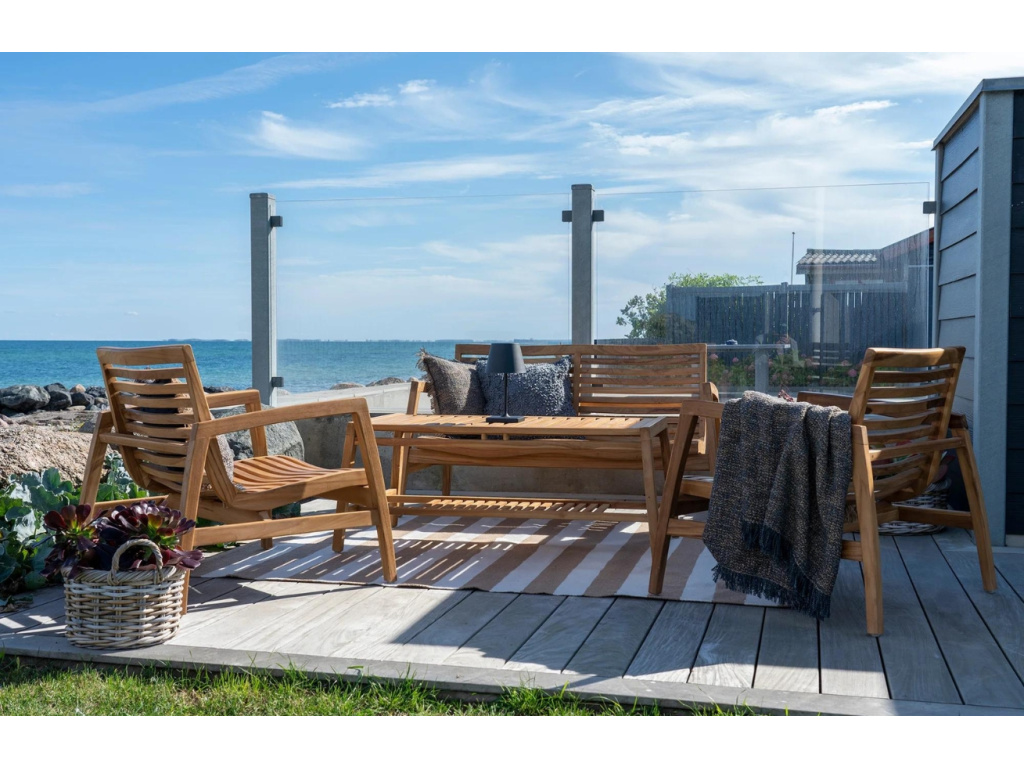 Zahradní set Santander značky Nordic Living se skládá z lavice, dvou křesel a konferenčního stolku z teakového dřeva. Tento set ocení všichni milovníci pohodlného odpočinku na čerstvém vzduchu. Skvěle se hodí pod pergolu i na terasu, ale také třeba do zimní zahrady. Lavice i křesla jsou dodávány včetně polštářů, díky kterým se z náručí tohoto designového kousku nebudete chtít zvednout. Díky praktickému stolku si navíc budete mít kam odložit kávu, občerstvení i rozečtenou knížku. Užijte si pohodlí ve společnosti tohoto skvělého setu! Součást balení je i voděodolný ochranný obal na zahradní set.