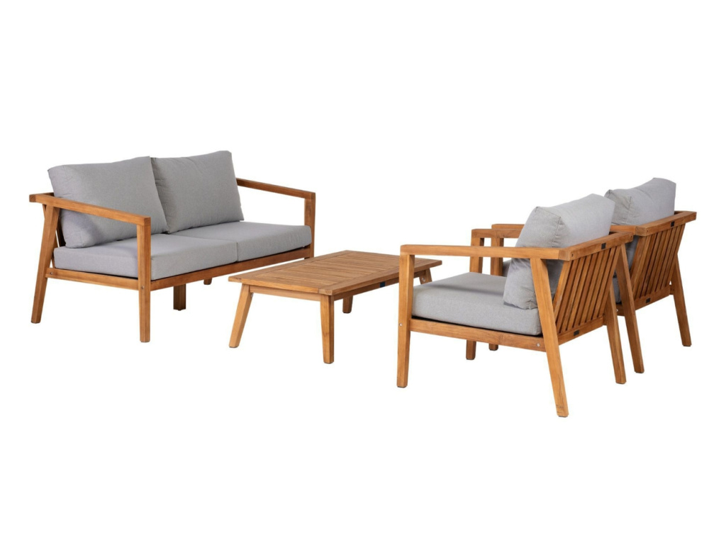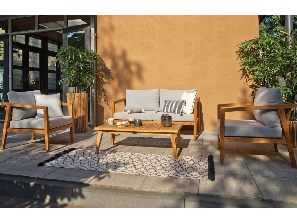 Zahradní set Luisiano je ideální volbou pro vaši zahradu, terasu, a chybu s ním neuděláte ani v přírodně laděných interiérech. Konstrukce všech kousků tohoto setu je z teakového dřeva s certifikací FSC, takže máte jistotu, že dřevo pochází z odpovědných zdrojů. Křesla a pohovka jsou doplněna o pohodlný látkový čalouněný sedák a opěradlo, které vám poskytne ideální zázemí pro odpočinek. Oceníte i teakový stolek, který vám poslouží k odložení vašeho občerstvení při příjemných chvílích s rodinou a přáteli. Podsedák ani opěradlo nejsou vhodné pro venkovní skladování, proto doporučujeme podsedák s opěradlem skladovat v interiéru, aby nedošlo k jejich poškození.