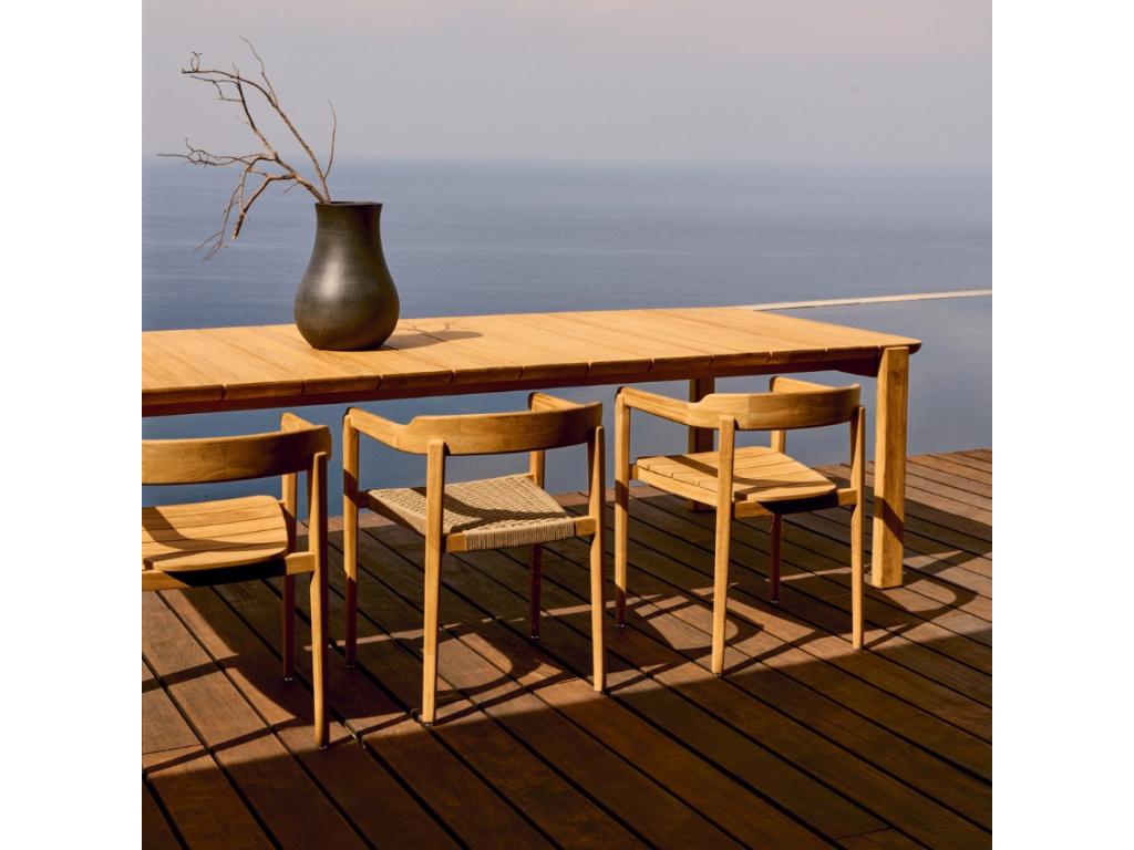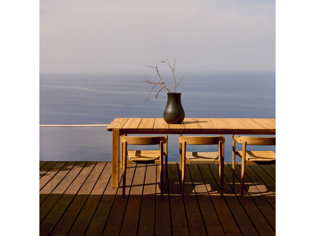 Zahradní nábytek Icaro od Kave Home je navržen tak, aby svým osobitým designem dodal charakter vnitřním i venkovním prostorům. Design je inspirován japonskými strukturami, kde je středem pozornosti masivní teakové dřevo. Dřevo, použité na tuto kolekci, se pyšní certifikací FSC, díky níž pochází z udržitelně a zodpovědně obhospodařovaných lesů. Struktura dřeva vytváří krásnou originální kresbu na každém jednotlivém kusu nábytku. Jídelní stůl Icaro v šířce 280 cm poskytne sezení až osmi lidem, proto se nemusíte bát nečekané početnější návštěvy. Usaďte se na vaší terase, zahradě i v jídelně a vytvořte dokonalý soulad spolu s dalšími designovkami ze stejnojmenné kolekce.