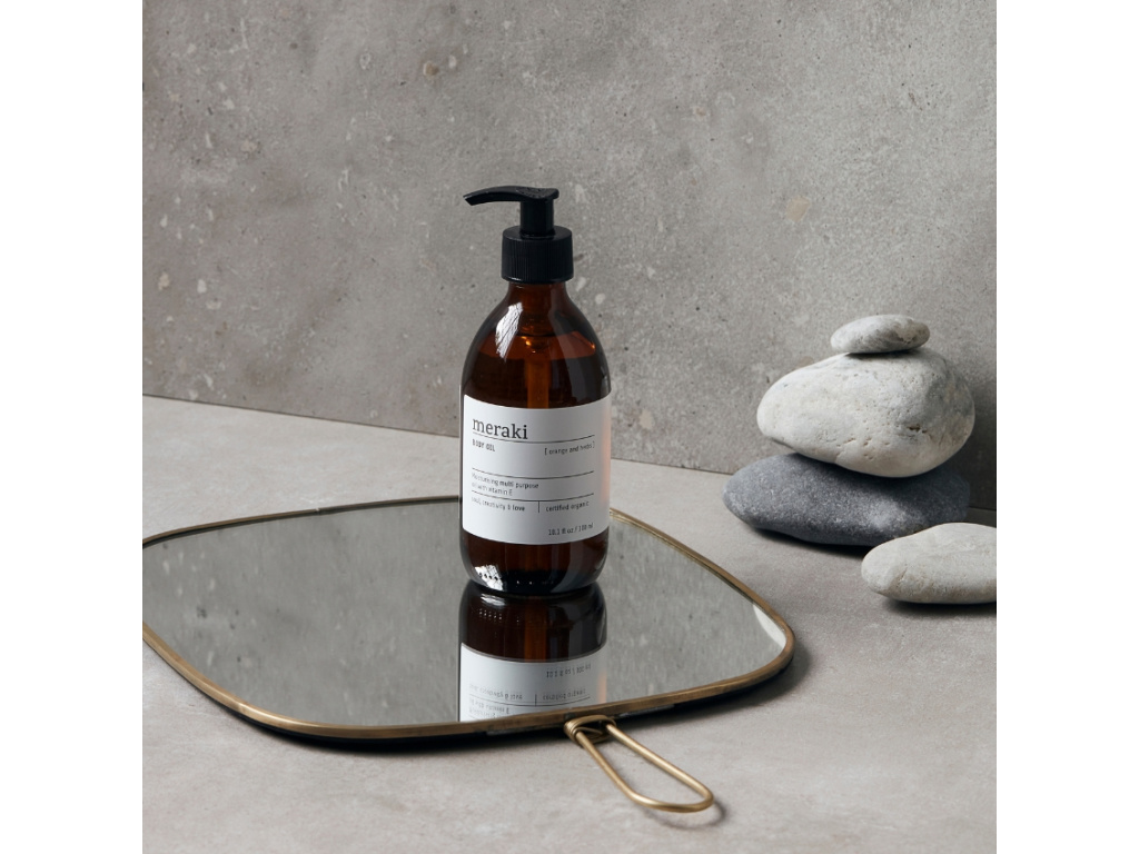 Dopřejte svému tělu tu nejlepší péči s certifikovaným organickým tělovým olejem Orange & Herbs od Meraki. Vyživující olej obsahuje organické oleje ze sezamu, oliv a řepky, které hydratují, vyživí a zjemní vaši pokožku. Víceúčelový olej využijete jako olej tělový, masážní, jako odličovač, na suchá místa pokožky, do konečků vlasů nebo při holení. Pokud přidáte trochu oleje do svého denního krému, dopřejete svému obličeji extra péči. Olej vás okouzlí voňavými tóny pomeranče, růže a hřebíčku.