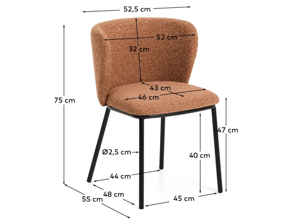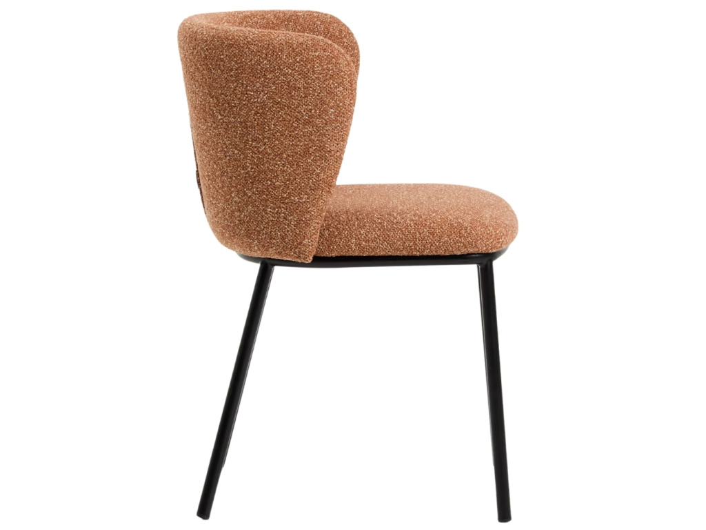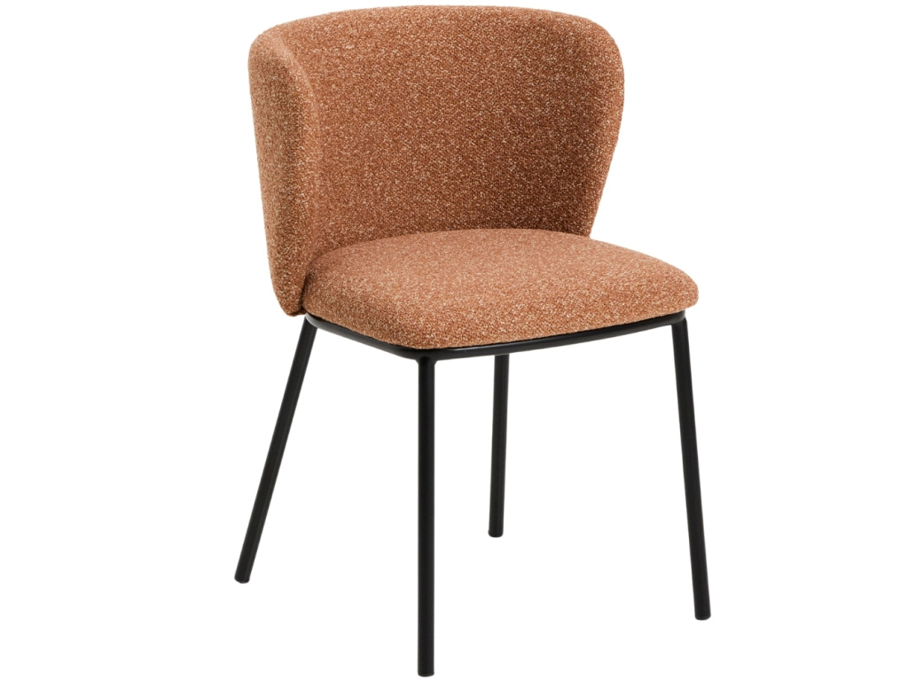 Jídelní židle Ciselia v odstínu terakoty spojuje moderní design s nečekaným pohodlím. Je čalouněná žinylkovou látkou, jejíž hebká textura přináší do prostoru klid a útulno. Sedák s výplní z polyuretanové pěny zajišťuje příjemnou oporu i při delším sezení a je tak ideální pro každodenní stolování. Židle Ciselia je součástí kolekce, která přináší do interiéru přirozenou eleganci i moderní výraz – k dispozici je také ve variantě barové židle.