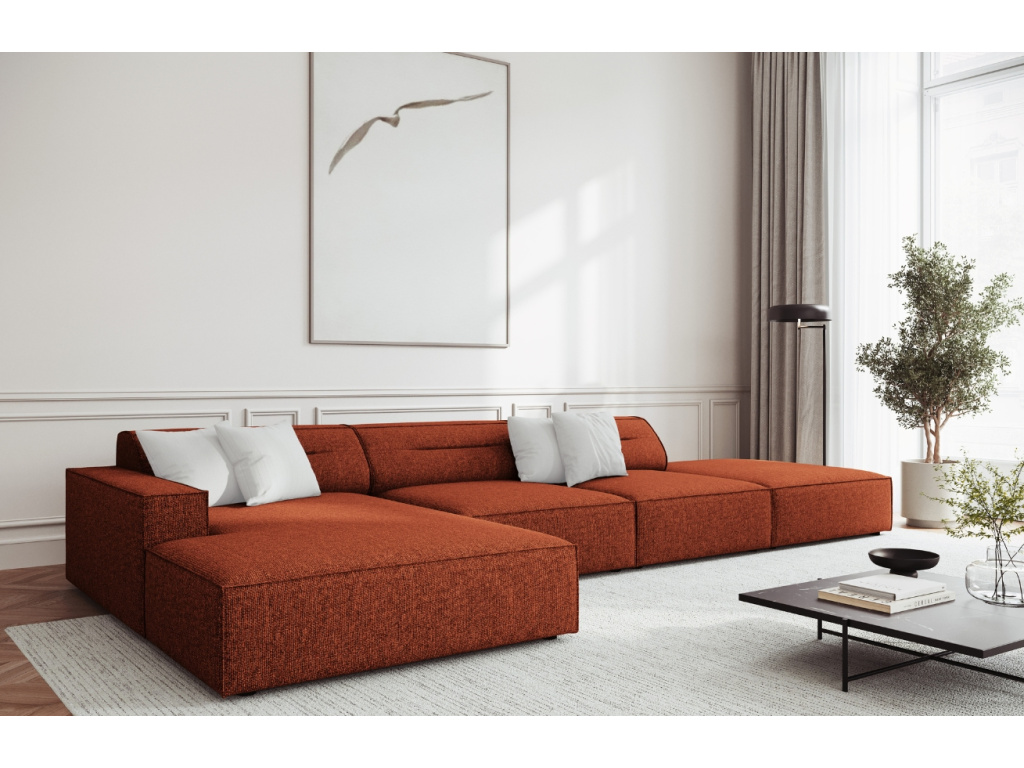 Rohovou pohovku Lupus od značky Windsor & Co si zamilujete! O vaše maximální pohodlí se postará její žinylkové čalounění v terakotově červeném odstínu, které je odolné proti oděru a zároveň příjemné na dotek. Probarvené nitě vytvářejí poutavou 3D strukturu se stínovým a lesklým efektem. Také se pyšní certifikátem OEKO-TEX® STANDARD 100, což znamená, že je textilie zcela bez chemikálií. Pohovka Lupus svými proporcemi nabídne prostorné a pohodlné místo až pro 5 osob. Pro sjednocení vašeho sedacího koutu doporučujeme pohovku doplnit také stylovým křeslem nebo dalšími pohovkami ze stejnojmenné série. Všechny produkty nabízíme v několika barvách. Odpočiňte si a relaxujte ve stylu!