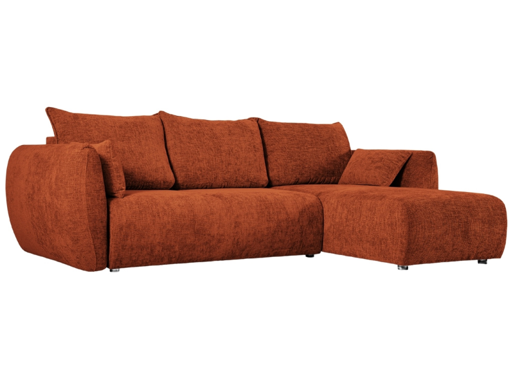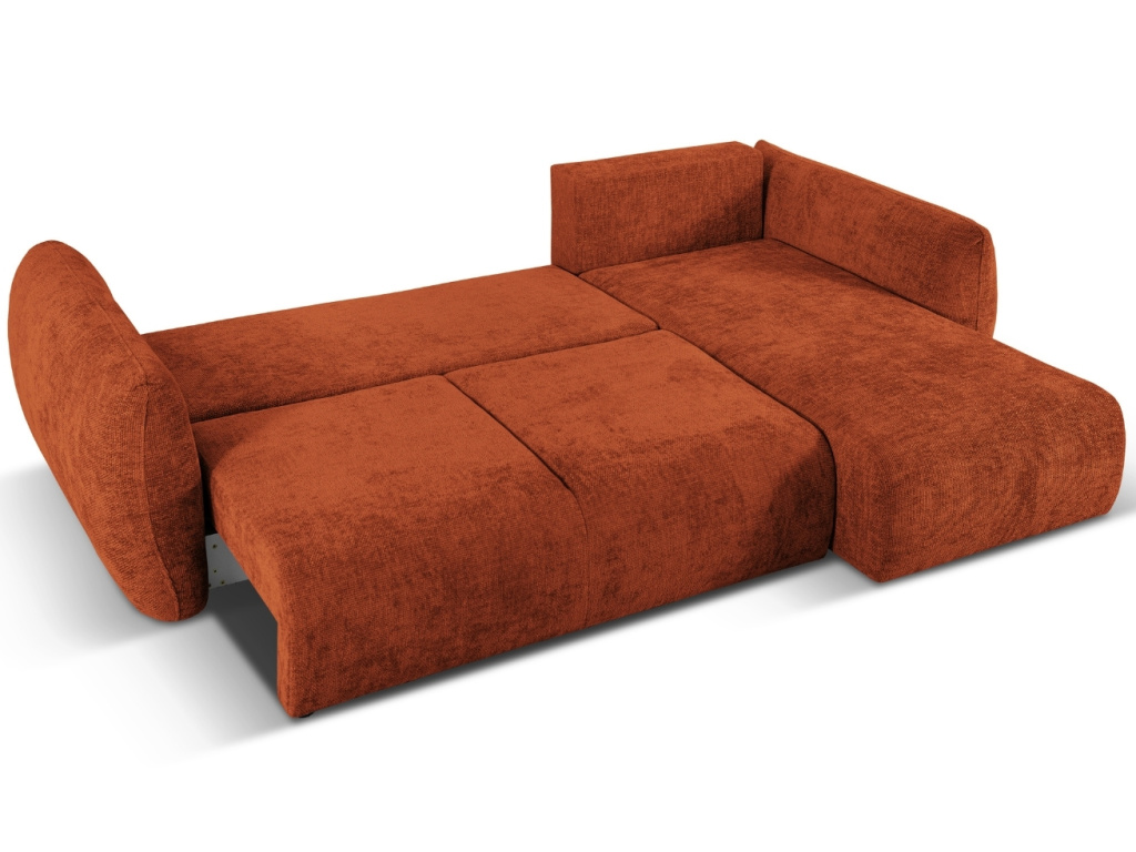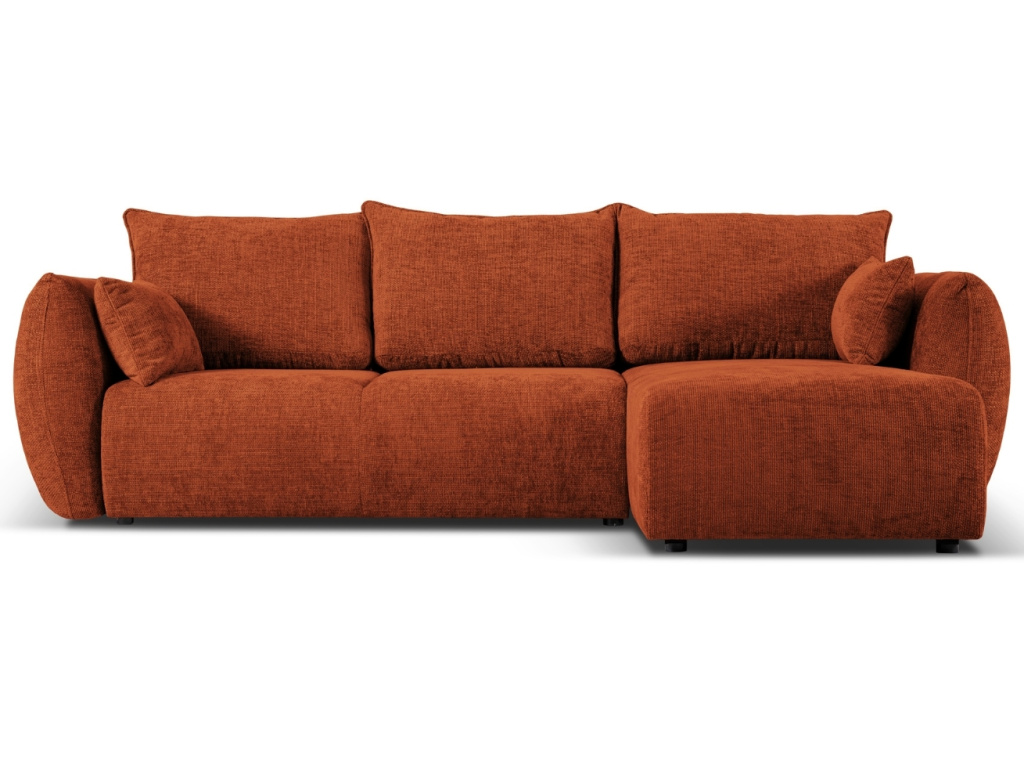 Vytvořte z obývacího pokoje oblíbené útočiště pro celou rodinu s rozkládací rohovou pohovkou Matera od značky Cosmopolitan Design. Její žinylkové čalounění v terakotově červeném odstínu je odolné proti oděru a zároveň velmi příjemné na dotek. Probarvené nitě vytvářejí poutavou 3D strukturu se stínovým a lesklým efektem. V pár jednoduchých krocích získáte z pohovky pohodlné a prostorné lůžko na spaní pro návštěvu a nechybí ani úložný prostor pro veškeré lůžkoviny a polštářky. A že není oranžová barva tou pravou pro vás? U nás můžete vybírat z několika barevných variant.