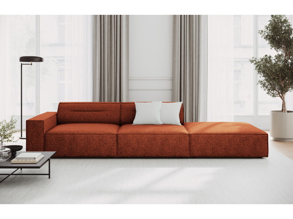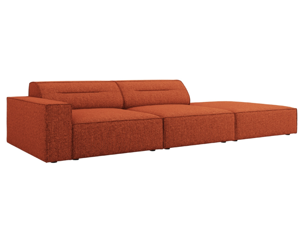 Třímístná pohovka Lupus od značky Windsor & Co je výrazný kus nábytku, který v sobě spojuje jednoduchost a eleganci. O vaše maximální pohodlí se postará její žinylkové čalounění v terakotově červeném odstínu, které je odolné proti oděru a zároveň příjemné na dotek. Probarvené nitě vytvářejí poutavou 3D strukturu se stínovým a lesklým efektem. Také se pyšní certifikátem OEKO-TEX® STANDARD 100, což znamená, že je textilie zcela bez chemikálií. Doplnit ji můžete o křeslo či další pohovky ze stejnojmenné kolekce – nabízíme je v několika barevných provedení. Odpočívejte ve stylu!