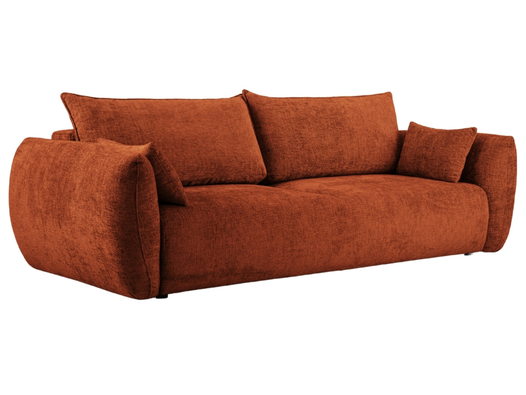 V jednoduchosti je krása. Tento fakt potvrzuje třímístná pohovka Matera značky Cosmopolitan Design. Její žinylkové čalounění v terakotově červeném odstínu je odolné proti oděru a zároveň velmi příjemné na dotek. Probarvené nitě vytvářejí poutavou 3D strukturu se stínovým a lesklým efektem. Praktickým bonusem je možnost pohovku rozložit a vytvořit tak pohodlné lůžko pro vaši nečekanou návštěvu. Pohovka navíc disponuje úložným boxem, kam lze uschovat deky i polštáře a mít vše ihned po ruce. A že není oranžová barva tou pravou pro vás? U nás můžete vybírat z několika barevných variant.
