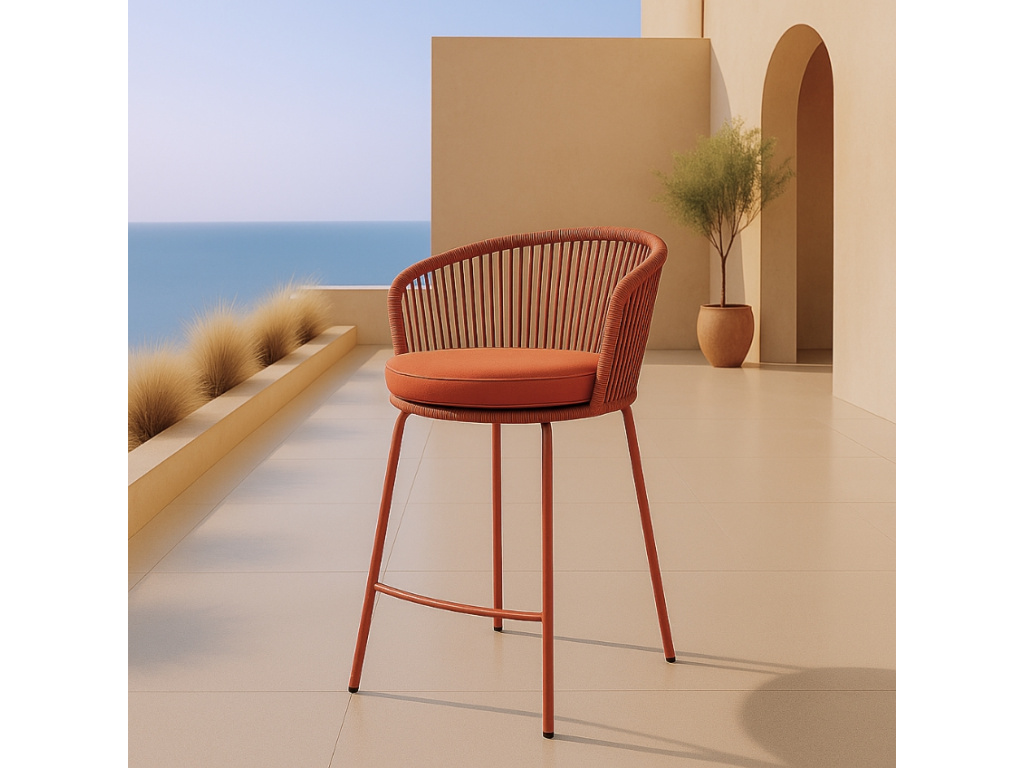 Barová židle Pierre v terakotově červeném odstínu vnese do každého venkovního prostoru špetku stylu i pohody. Opěrka s výpletem z odolné šňůry působí vzdušně a elegantně, zatímco její oblý tvar příjemně obejme záda. Stabilní kovová konstrukce s povrchovou úpravou pro venkovní použití doplňuje měkce čalouněný sedák, který vybízí k dlouhému posezení pod širým nebem. Kolekce židlí Pierre je ideální volbou pro terasy, zahrady i venkovní bary, kde se design snoubí s funkčností.