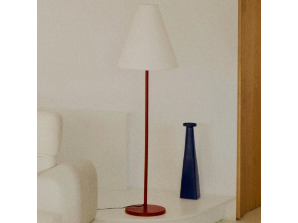 Stojací lampa Kave Home Navat je inspirována geometrickými tvary a kontrastními tóny. Pořídit si ji můžete s terakotově červenou nebo tmavě zelenou podstavou – obě jsou doplněny bílým bavlněným stínidlem. Navat bude skvělým způsobem jak přinést světlo k pohovce, křeslu, posteli i do každého tmavého kouta vaší domácnosti. Slušet bude minimalistickým i scandi interiérům.