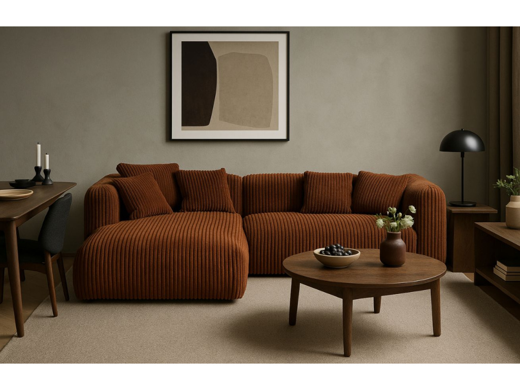 Podívám seTerakotově červená manšestrová rohová pohovka Martina 280 cm, levá