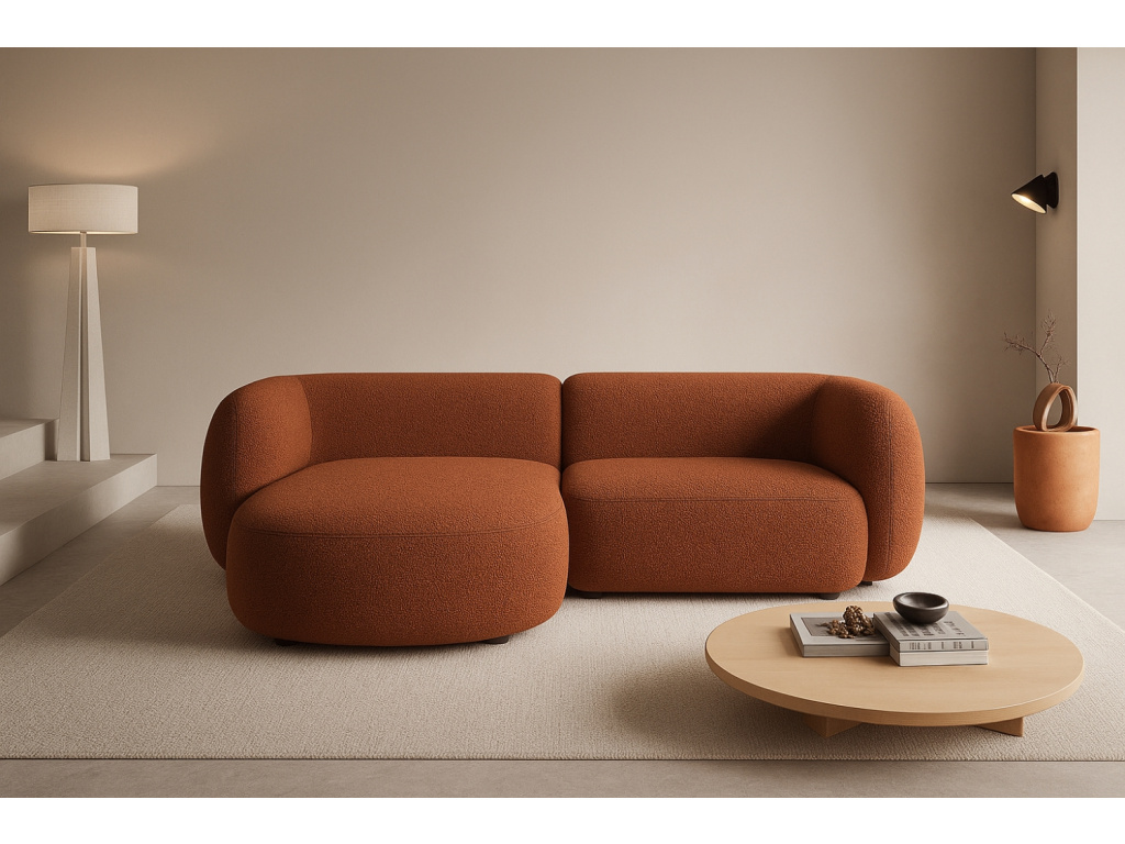 Více infoTerakotově oranžová bouclé rohová pohovka Kate 255 cm, levá