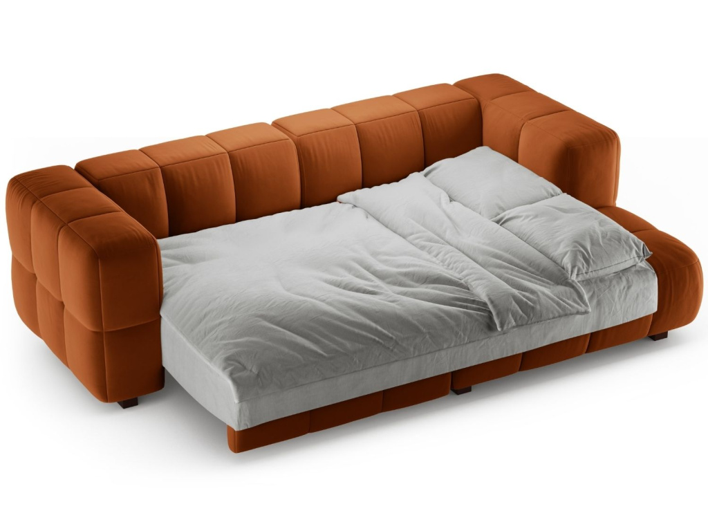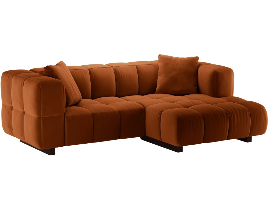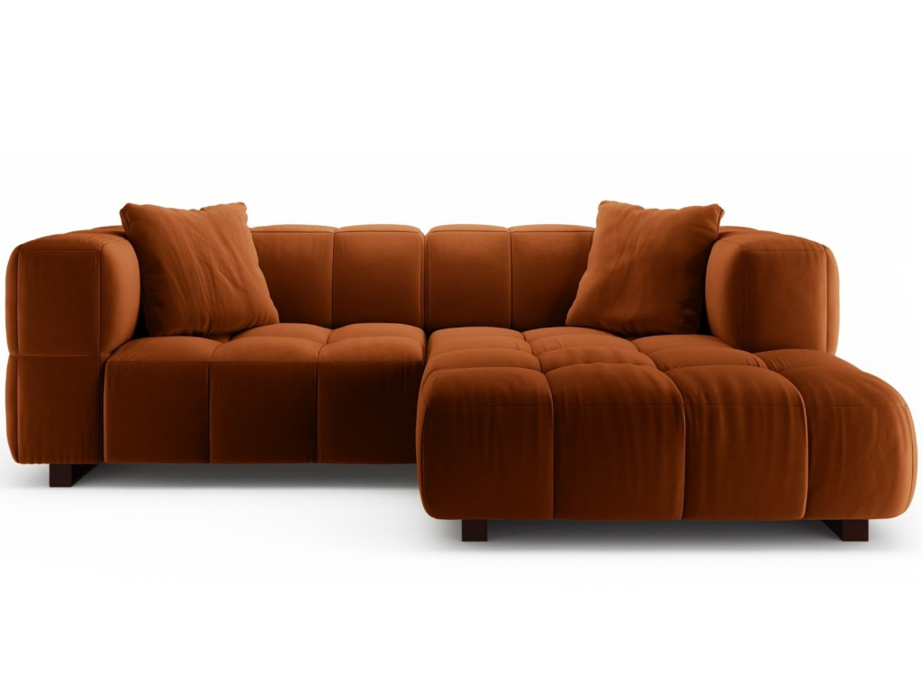 To chciTerakotově oranžová sametová rozkládací pohovka Puma 260 cm, pravá
