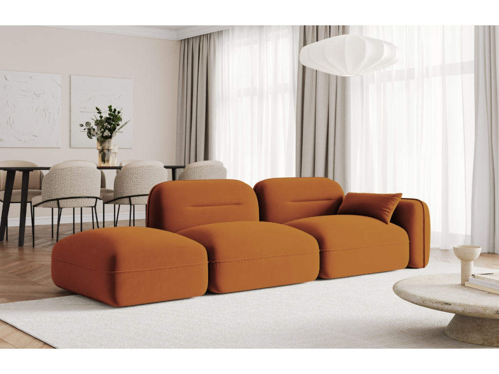 Podívám seTerakotově oranžová sametová trojmístná pohovka Sydney 295 cm, levá