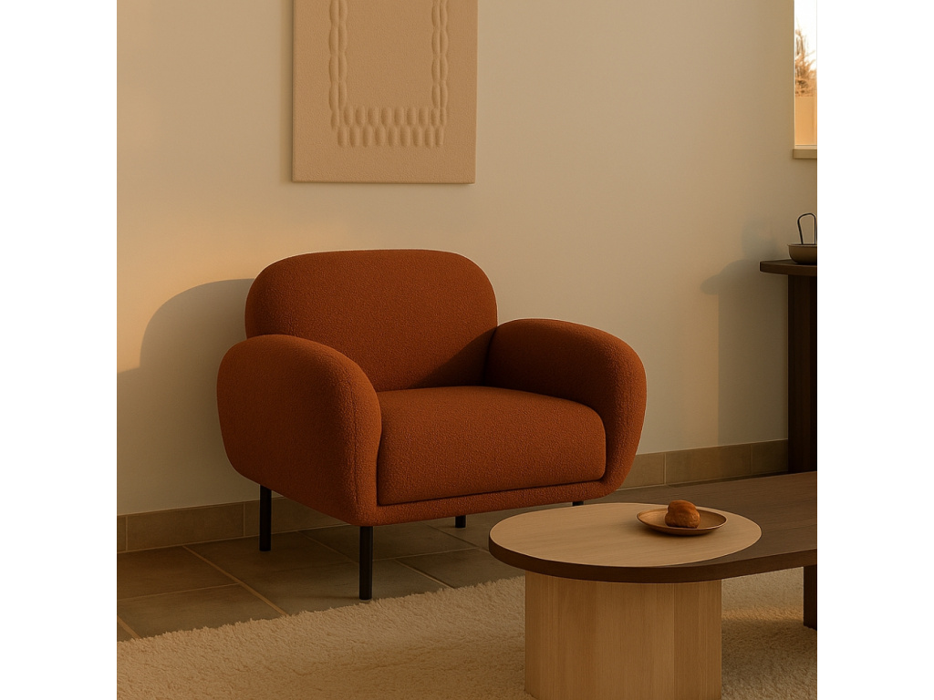 To chciTerakotově oranžové bouclé křeslo Poppy