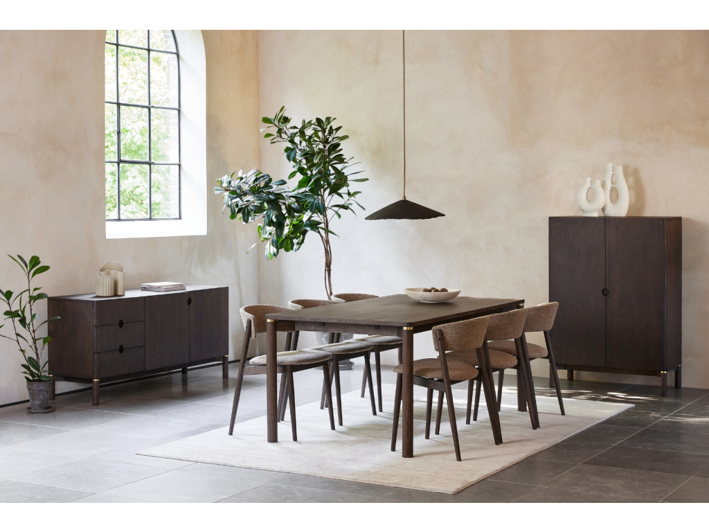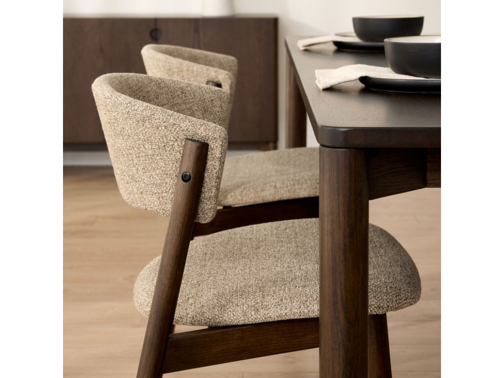 Jídelní židle Revere od značky Unique Furniture je poctou přírodnímu materiálu a nadčasovému designu. Její měkce tvarované linie a harmonické proporce působí elegantně a přívětivě, zatímco kvalitní zpracování zaručí pohodlí i dlouhou životnost. Sedák je čalouněn žinylkovou látkou Nolio, která okouzlí svou nepravidelnou vazbou a jemnou hrou barevných tónů. Látka je zároveň mimořádně odolná vůči oděru i každodennímu používání, takže si zachová svůj krásný vzhled po mnoho let. Podnož z masivního dubového dřeva s certifikací FSC™ MIX 70% pochází z odpovědně obhospodařovaných lesů, což podtrhuje udržitelný charakter židle. Tmavý tón dubu a jemná kresba dřeva dodávají designu hloubku, teplo a pocit opravdovosti. Revere je víc než jen židle – je to harmonické spojení komfortu, estetiky a respektu k přírodě. Elegantní kousek, který vnese do jídelny klid, rovnováhu a přirozený půvab.