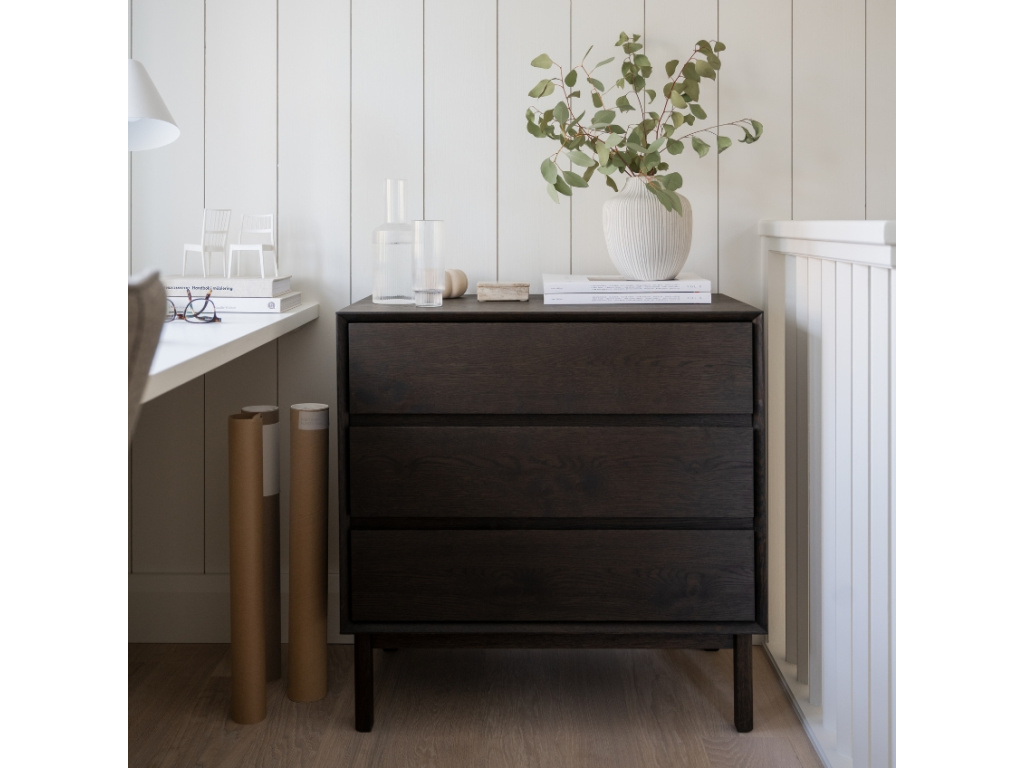 Komody MACKAY od značky ROWICO vynikají minimalistickým designem bez zbytečných ozdob. Tyto harmonické a čisté kousky nechávají vyniknout svou přirozenou krásu a precizně zpracované detaily. Komoda je vyrobena z masivního dubového dřeva a dýhy, a je dostupná ve třech velikostech a dvou barevných provedeních – přírodní nebo tmavé variantě. MACKAY se navíc chlubí certifikací FSC®, která zaručuje šetrnou výrobu k životnímu prostředí. Nechte se okouzlit atraktivním a funkčním designem s promyšlenými detaily!