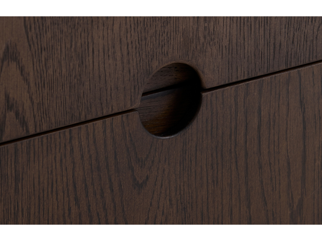 Dostatečný úložný prostor je nezbytností každé domácnosti a můžete ho získat díky komodě Arun od značky Unique Furniture, která nabízí praktický úložný prostor v podobě 6 polic. Komoda je vyrobena z tmavě hnědé dubové dýhy, která získala certifikát FSC. Dřevo je díky certifikaci ekologicky šetrné a výroba stolu tak nezatěžuje životní prostředí. Komodu můžete umístit do ložnice, obývacího pokoje i do chodby, zkrátka všude tam, kde potřebujete opravdu velkolepý úložný prostor. Ve stejnojmenné sérii navíc najdete více designově sladěných produktů, které se budou v interiéru skvěle doplňovat.