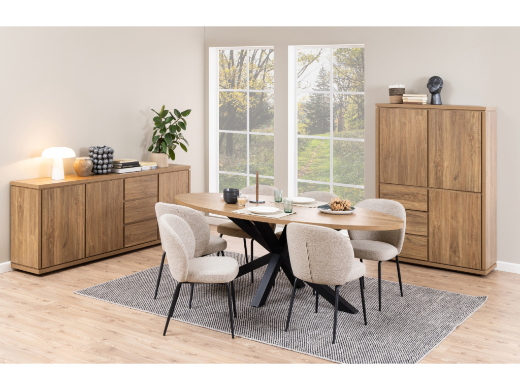 Udělejte ze svojí jídelny o něco elegantnější místo díky židli Felicia od značky Scandi. Trendy čalouněný sedák a opěradlo z bouclé tkaniny, která je velice měkká na dotek, poskytnou skvělé pohodlí při společných chvílích u jídla s rodinou či přáteli. Čalounění se vyznačuje také vysokou odolností vůči mechanickému poškození a navíc lze ze židle snadno sundat, což usnadňuje následné čištění. V nabídce pro vás máme hned několik barevných provedení. Užijte si pohodlí s tímto designovým kouskem!