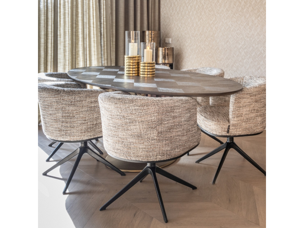 Pohodlná a elegantní jídelní židle Cheyenne je jedinečným produktem značky Richmond. Je čalouněna béžovou tkaninou, která zútulní vaši jídelnu. Černá kovová podnož s otočnou funkcí o 360 stupňů vám umožní usednout a vstát bez nutnosti posouvat židli. Oživte svůj jídelní kout a dejte mu punc svěžesti a stylu s jídelní židlí Cheyenne. Můžete si vybrat z více barevných provedeních.