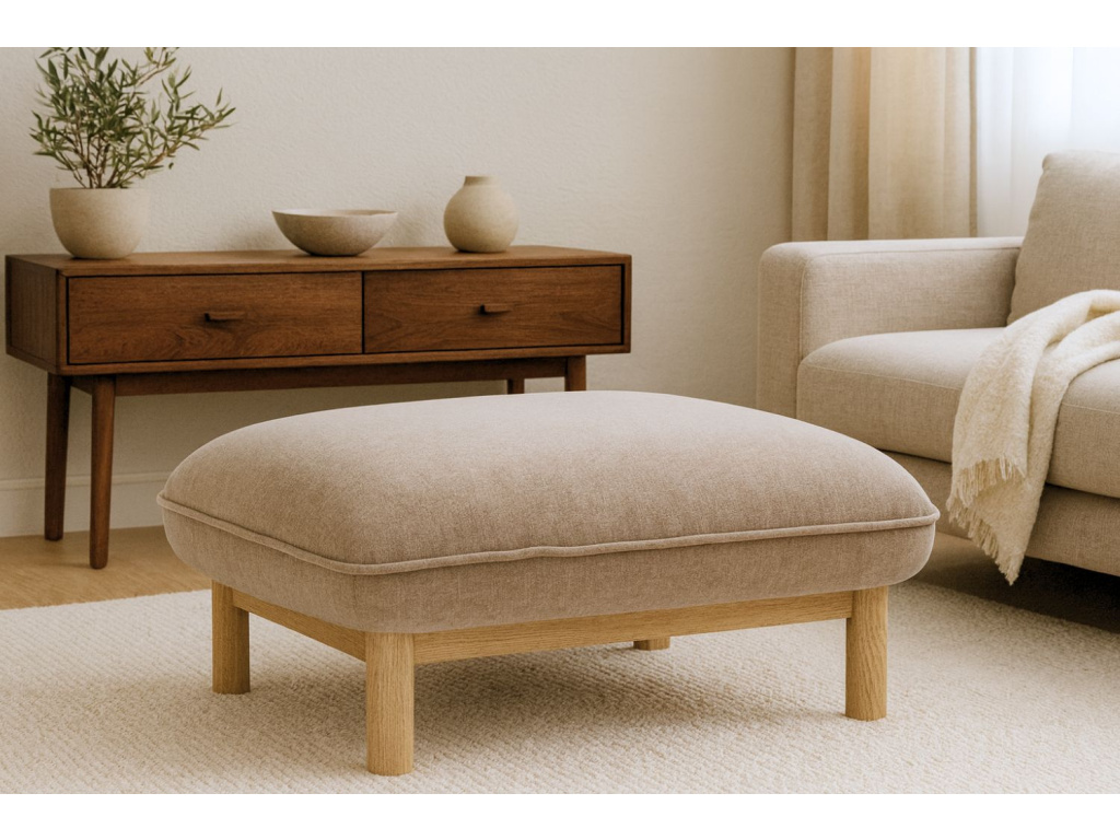Podnožka Ada inspirovaná skandinávským designem spojuje jemnou eleganci s maximálním pohodlím. Její měkké linie a robustní dřevěný rám s odkrytou podnoží dodávají celku přirozený řemeslný vzhled, který vynikne v moderním i útulně laděném interiéru. Strukturovaná látka Wind vytváří jemné nepravidelné stínování, je mimořádně odolná proti opotřebení a snadno se udržuje, takže je ideální pro každodenní používání i do domácností s mazlíčky. Podnožku můžete využít jako pohodlnou oporu pro nohy, praktické dodatečné sezení nebo ji zkombinovat s pohovkami ze stejné kolekce a vytvořit si harmonický set na míru svému domovu. V kombinaci s jemným kobercem nebo stylovým konferenčním stolkem se stane elegantním a funkčním doplňkem vašeho obývacího pokoje.