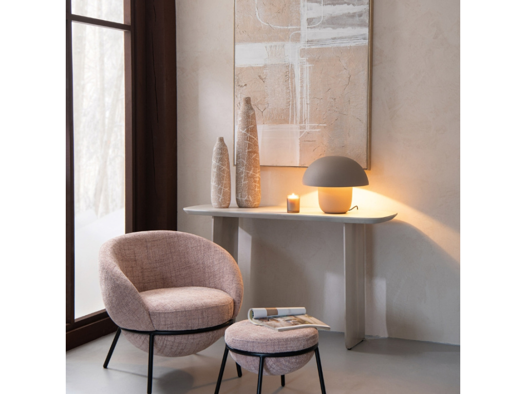 Stolní lampa Cordelius je designovým doplňkem, který ozvláštní každý interiér svým originálním tvarem v podobě houby. Minimalistický vzhled a matný povrch v béžovém odstínu jí propůjčují nadčasový charakter, díky kterému ji snadno sladíte s moderním i skandinávským stylem. Vydává měkké a jemně rozptýlené světlo, které vytváří útulnou atmosféru a podporuje klid a relaxaci. Perfektně se hodí na noční stolek, pracovní stůl i do obývacího pokoje jako stylový akcent. Tento kousek však není jen zdroj světla, ale také dekorativní prvek, který dodá prostoru charakter a osobitost.