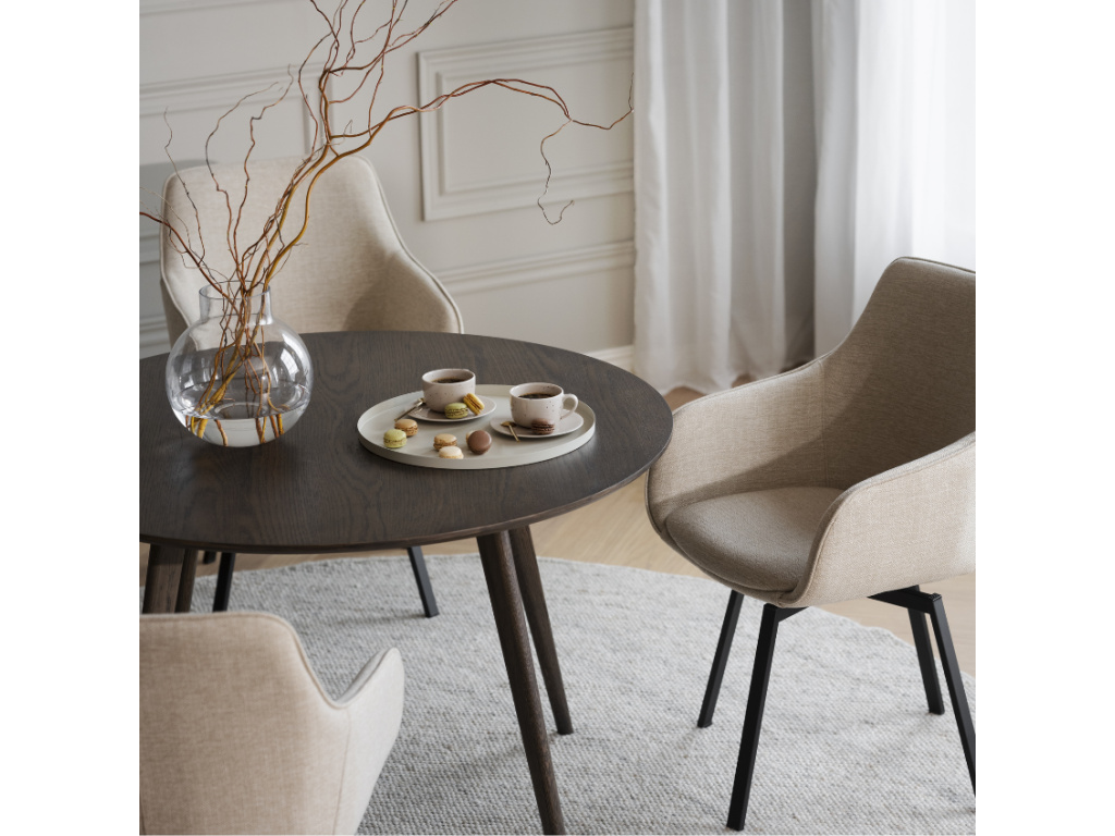 Představujeme vám tmavě béžová jídelní židle ALISON od značky ROWICO s podnoží z hnědého dubu. Židle je potažena polypropylenovým čalouněním, které se chlubí vysokým komfortem sezení, díky ergonomickému tvarování. Jistě zaujme i otočná konstrukce o 360 stupňů. ALISON se skvěle hodí do minimalistických nebo scandi prostorů k jídelnímu nebo pracovnímu stolu. Židle se chlubí certifikací FSC®, takže její výroba nezatížila životní prostředí. ALISON židli máme také v jiných barevných provedeních čalounění i podnože – vyberte si to pravé pro váš interiér!