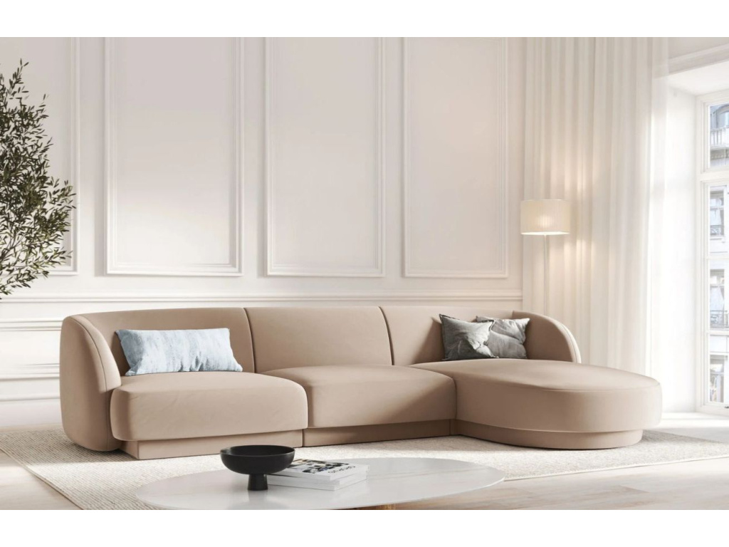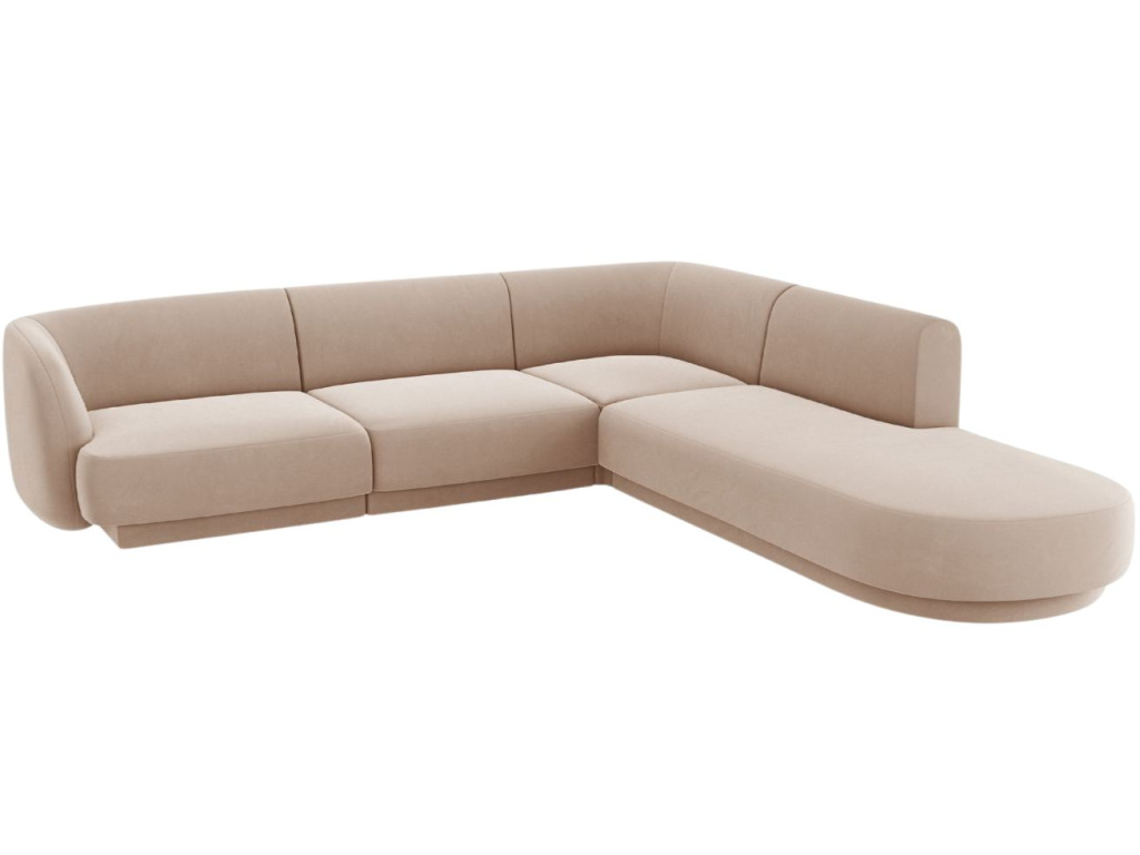 Šestimístnou rohovou pohovku Miley od značky Micadoni si zamilujete! Její obloukovitě tvarované opěradlo vybízí k tomu, abyste se na chvíli pohodlně usadili. Mírně zapuštěná základna dodává sezení vznášející se charakter, který dotváří vzhled připomínající oblak. Měkký, odolný a na pohled příjemný samet poskytuje nábytku lákavý vzhled, který vnese do místnosti záři a pocit sofistikovanosti. Pohovka je ideální volbou do interiéru v moderním nebo skandinávském stylu. K pohovce je možné přikoupit další produkty z kolekce Miley. Díky tomu si můžete vytvořit sedací soupravu, kterou je vhodné kombinovat se skleněným nebo dřevěným konferenčním stolkem.
