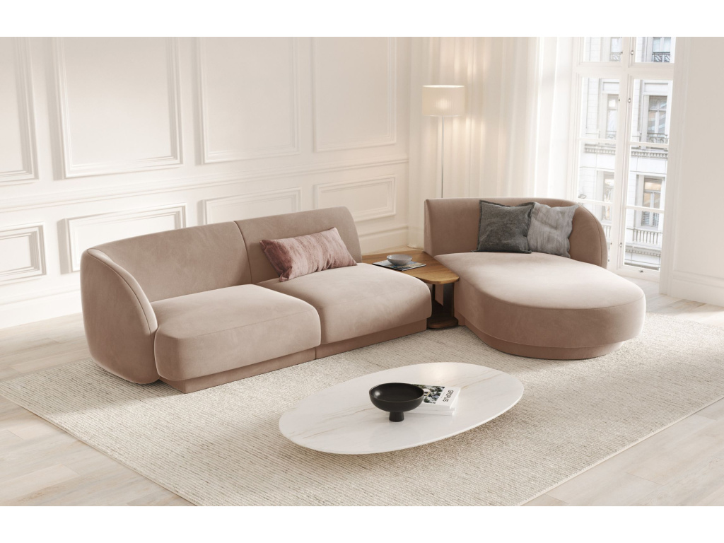 Pětimístnou rohovou pohovku Miley od značky Micadoni si zamilujete! Její elegantně obloukovité opěradlo vás doslova zve k odpočinku, zatímco jemně zapuštěná základna dodává celému kusu vzdušnost a lehkost. Měkký, odolný a na pohled příjemný samet poskytuje nábytku lákavý vzhled, který vnese do místnosti záři a pocit sofistikovanosti. Pohovka je ideální volbou do interiéru v moderním nebo skandinávském stylu. K pohovce je možné přikoupit další produkty z kolekce Miley. Díky tomu si můžete vytvořit sedací soupravu, kterou je vhodné kombinovat se skleněným nebo dřevěným konferenčním stolkem.