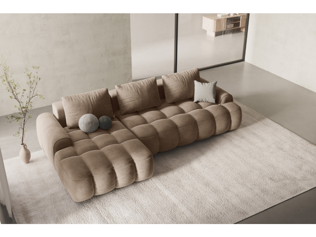 Podívám seTmavě béžová sametová rozkládací pohovka Linz 275 cm, levá