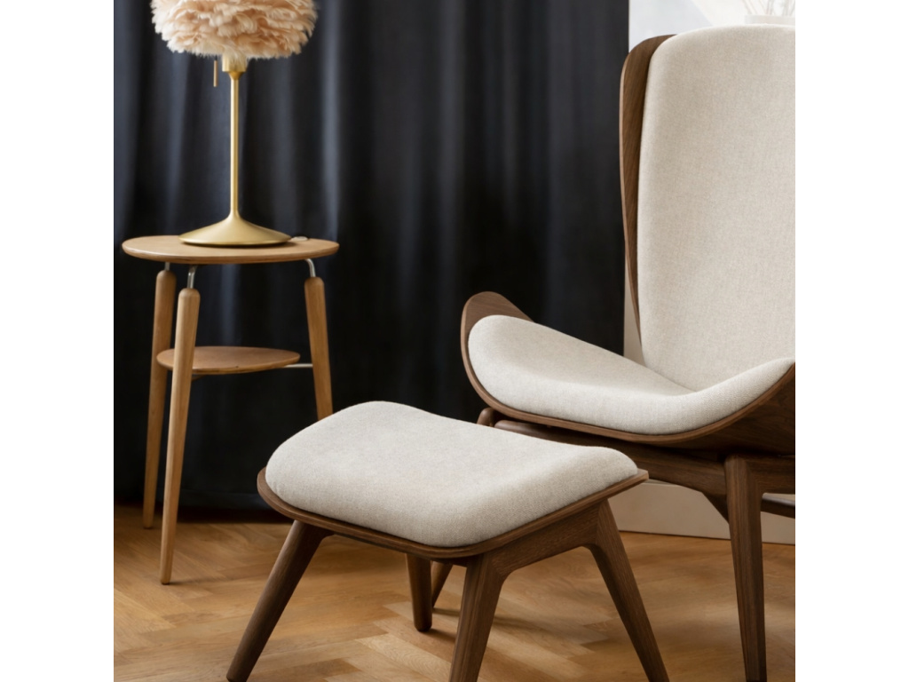 Vyberu siTmavé dubové křeslo The Reader s bílým čalouněním